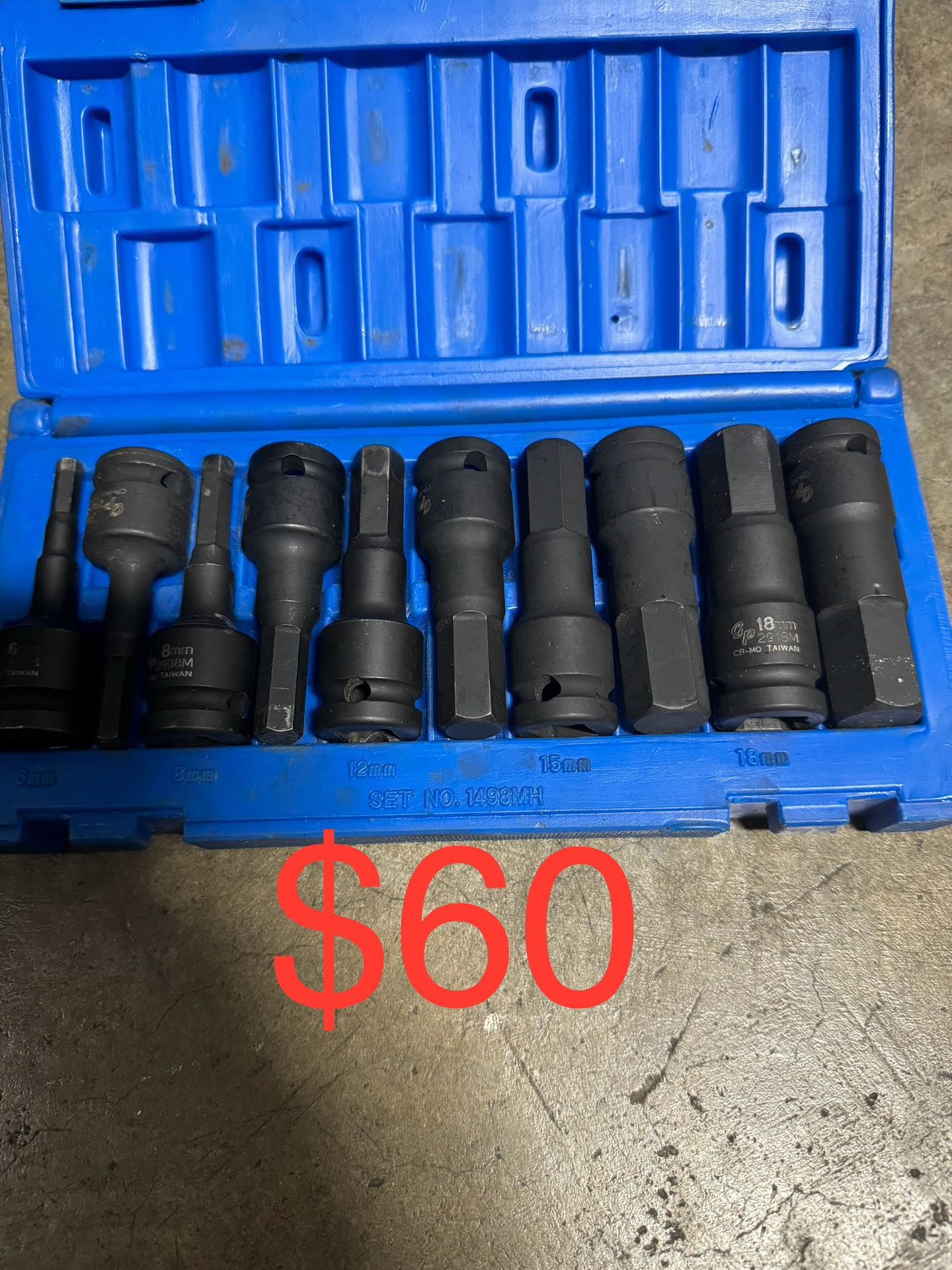 10 PC 1/2 DRIVE METRIC HEX DRIVER SET