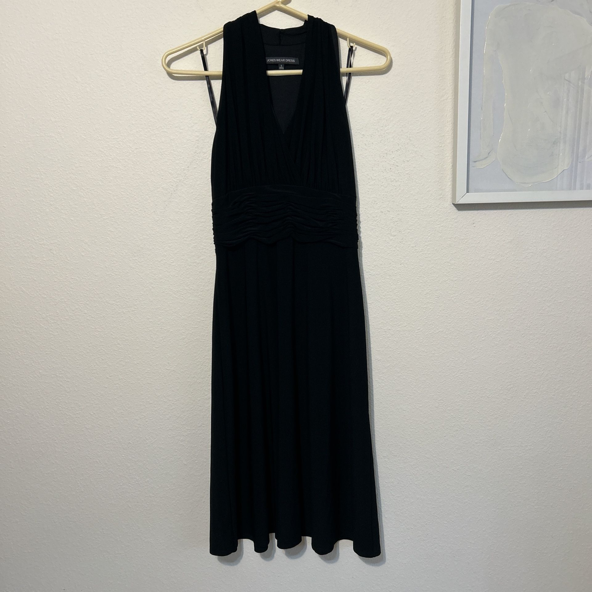 This stunning black halter gown features a fitted bodice that flows into a long, elegant skirt, perfect for a cocktail event or night out. The lightweight fabric drapes beautifully, enhancing the dress's sophisticated silhouette. Tote #2