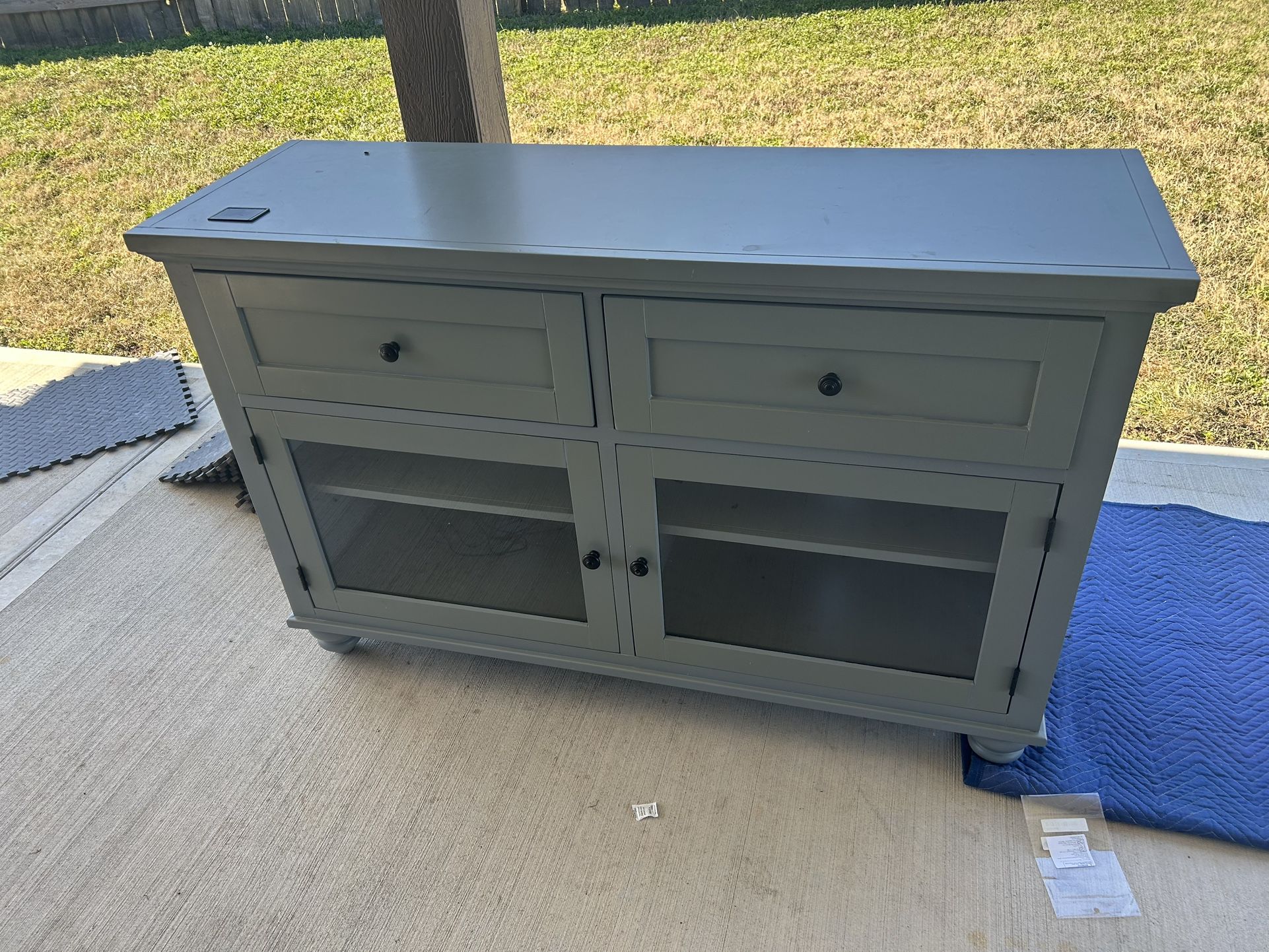 Tv stand entertainment center has 2 drawers and two glass doors aspenhome brand