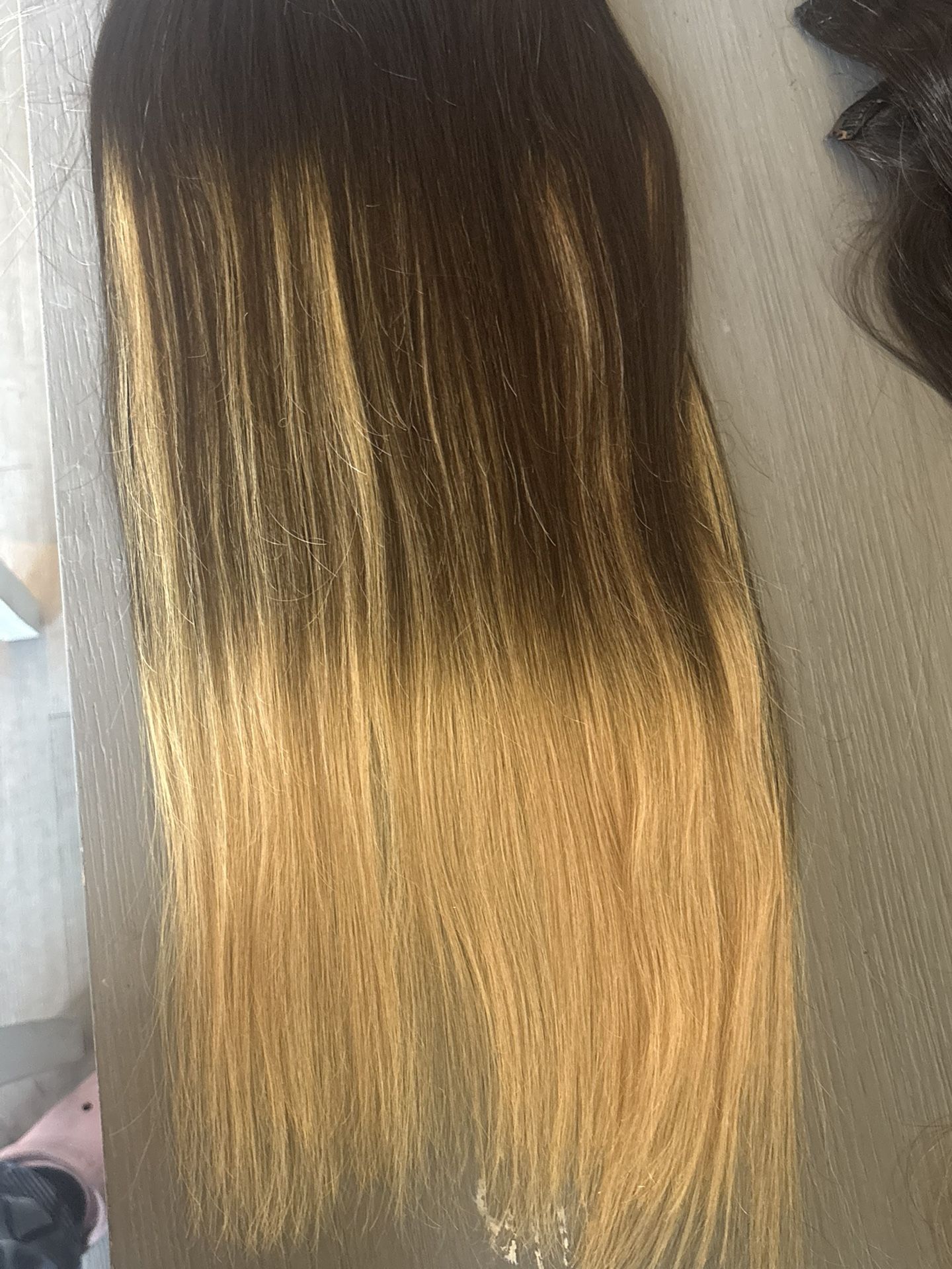 Human hair 100% different lengths from 10 inch to 27 inches Able to dye bleach curl it and straighten it
