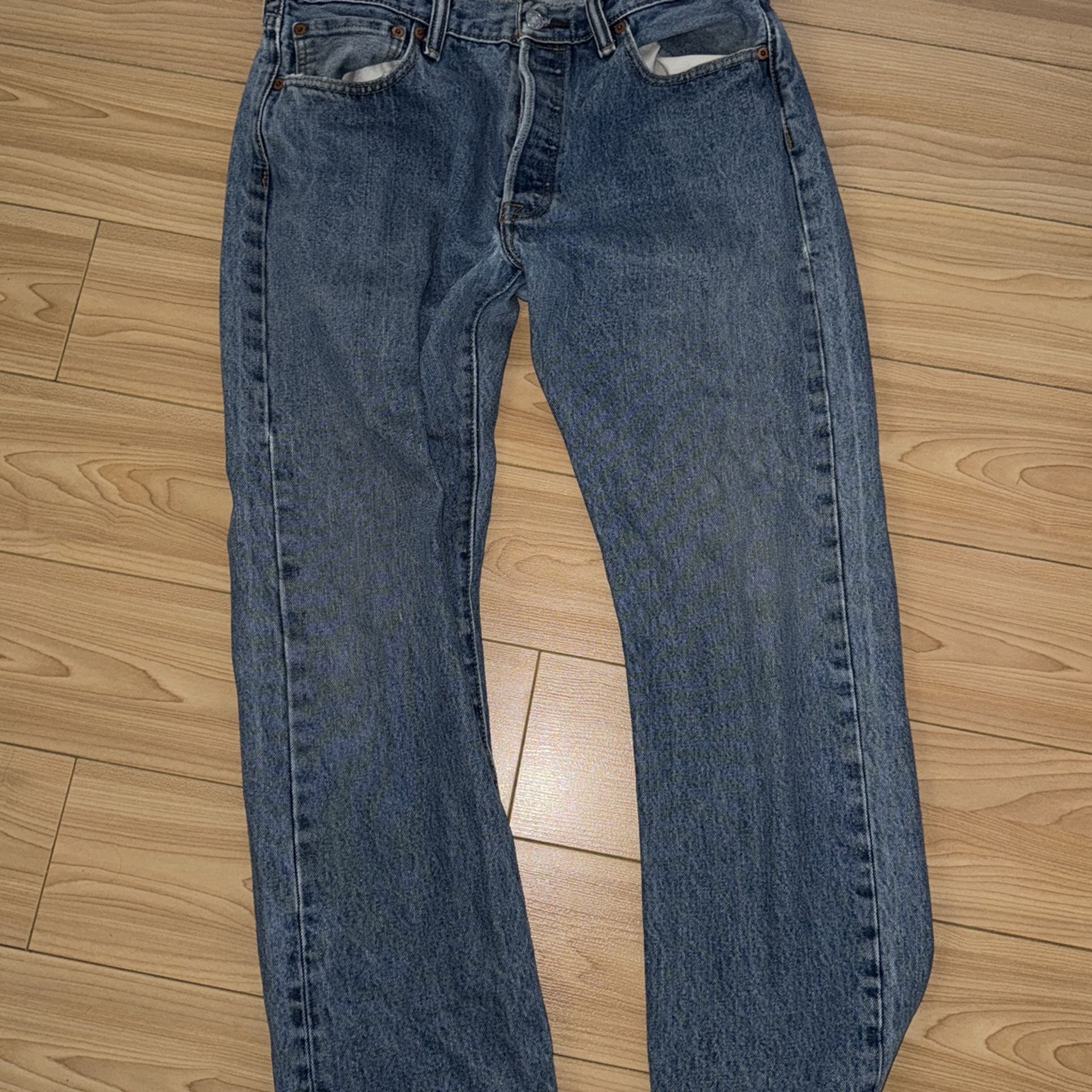 The jeans are good condition it has button instead of a zipper. One of the pockets is cut out but overall still wearable!