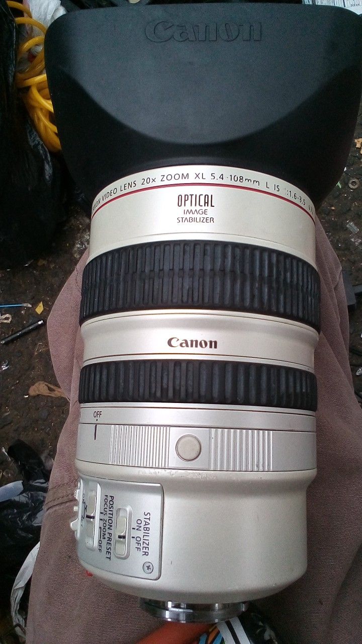 Canon video lens 20x zoom XL 5.4-180mm 1:1.6-3.5 optical image stabilizer l. In very good condition. Only serious inquiries please pick up only cashapp accepted