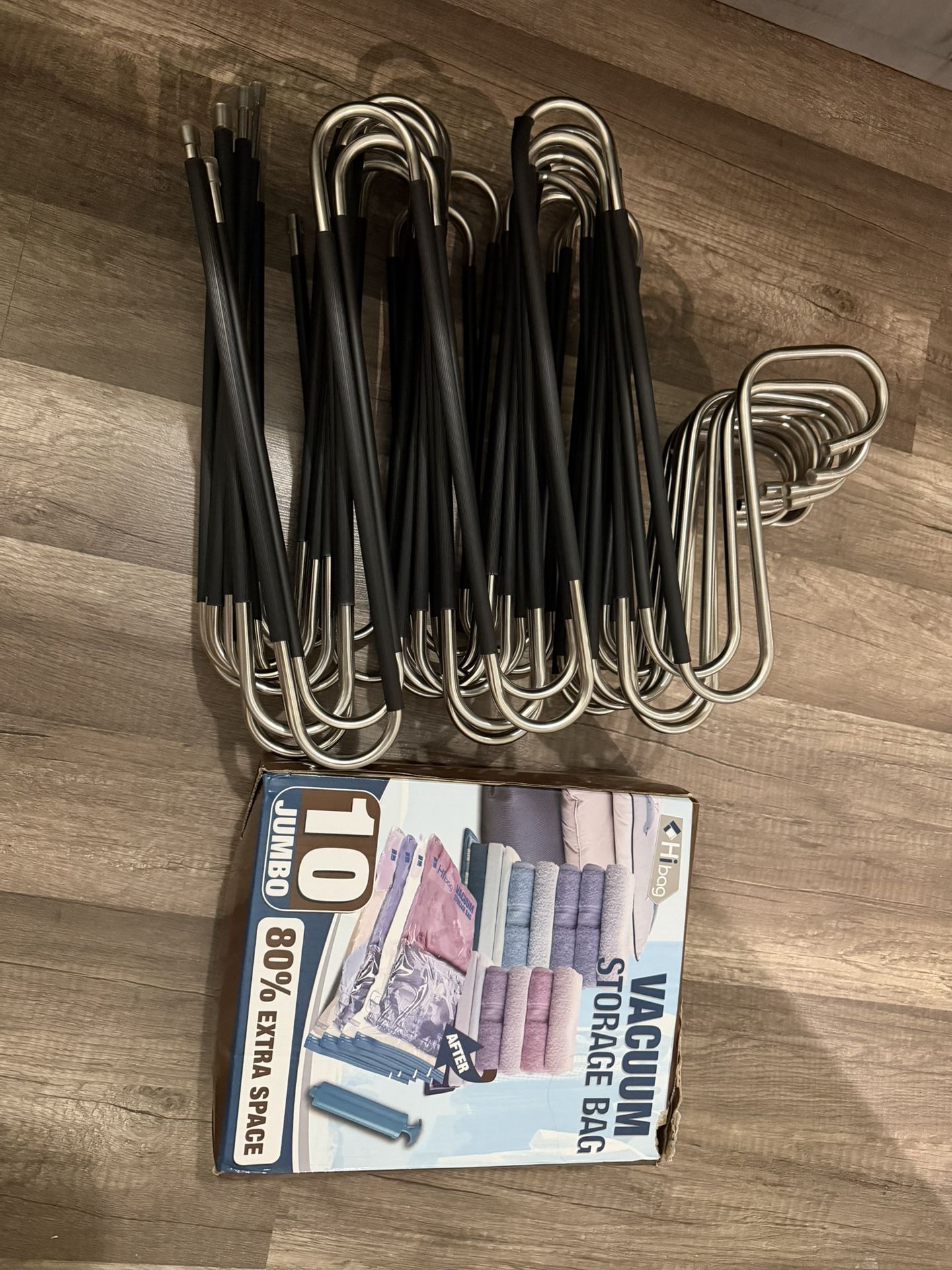 13 hangers (fits 5 items each) ONLY 6 vacuum storage bags Jumbo with pump