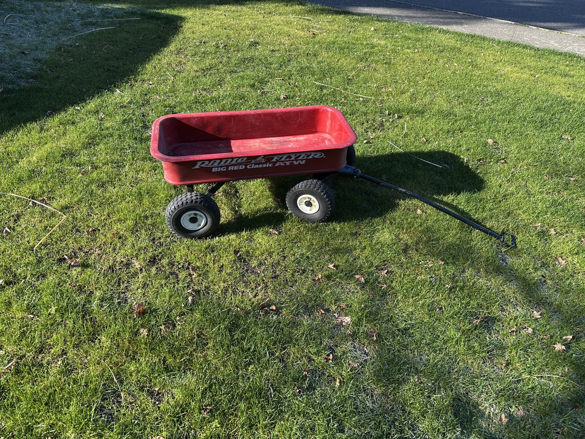Big red classic ATW radio flyer wagon. Has the big off road wheels. In great condition stored inside was used for silverwood and packwood flea market shopping. Asking $100 OBO.