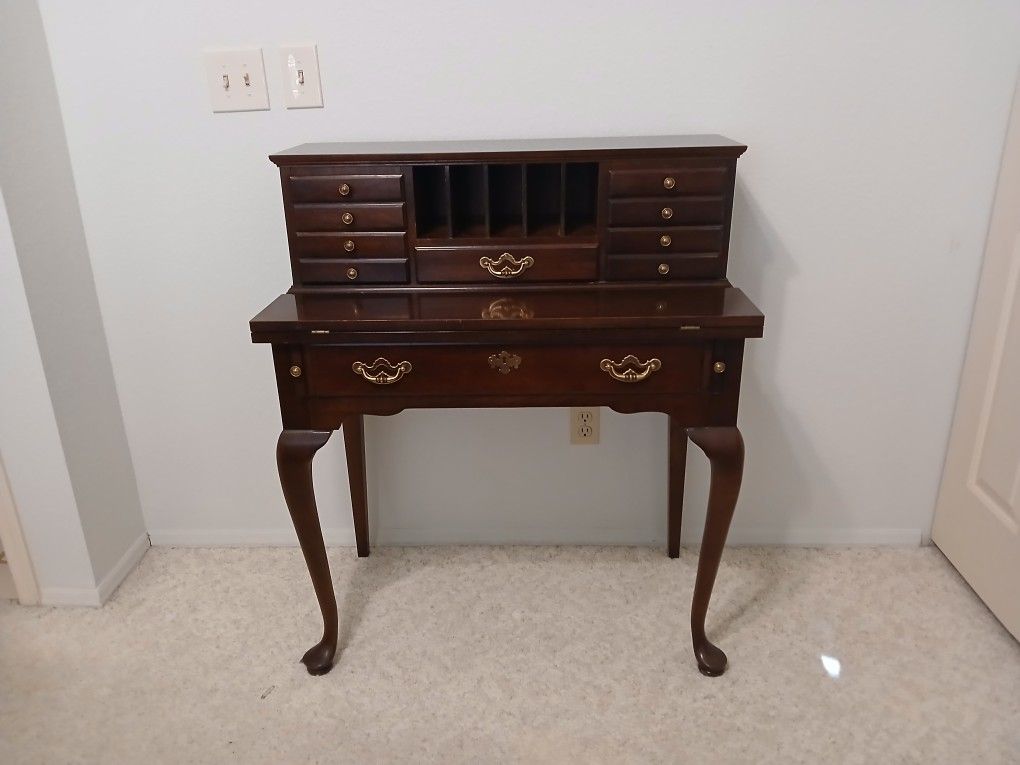 Queen Anne style desk. Desk is in good condition with some signs of age/use.