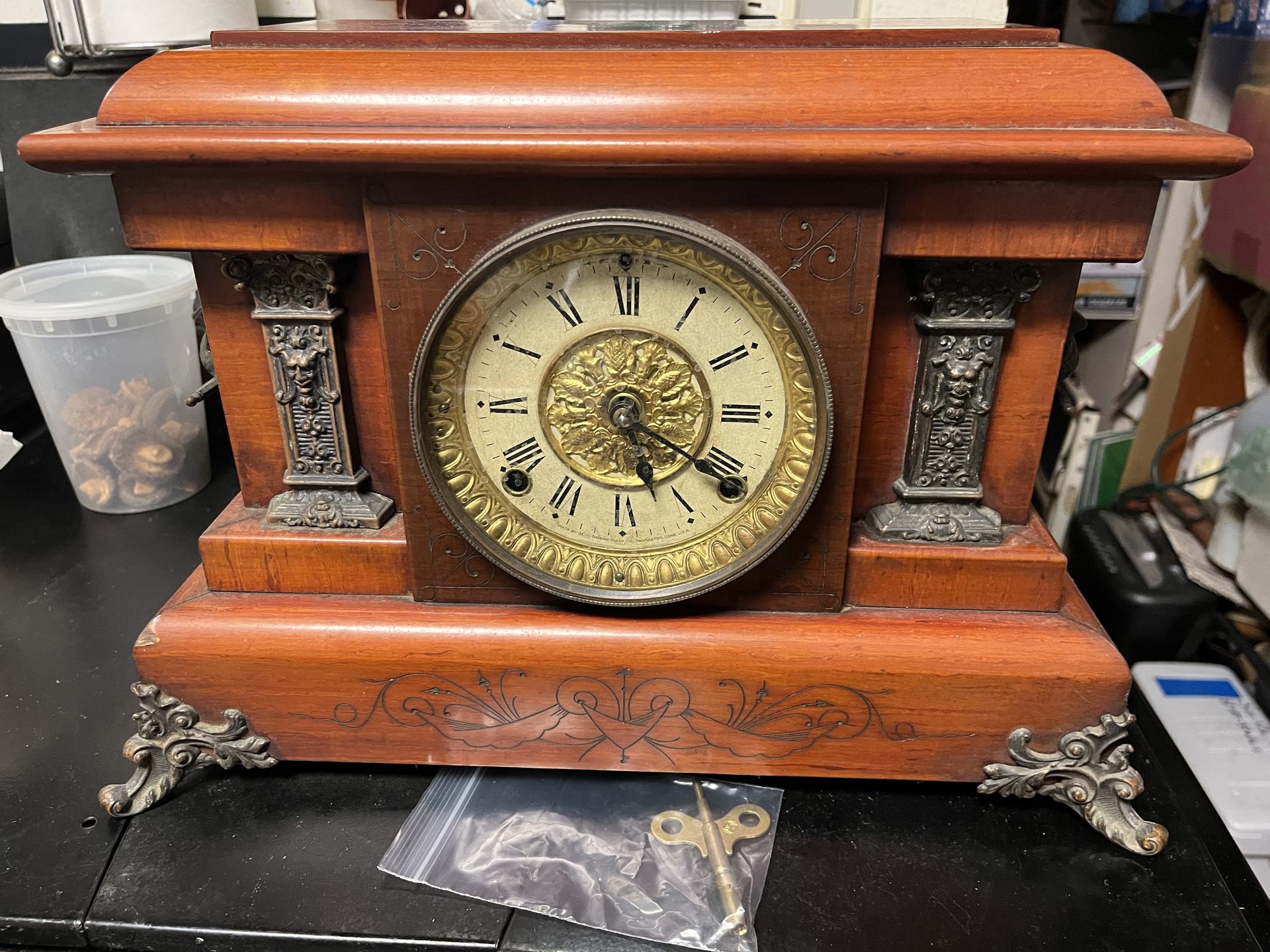 Antique Seth Thomas 8 Day Time & Strike Adamantine Mantle Clock. It’s excellent working condition. Cash only.