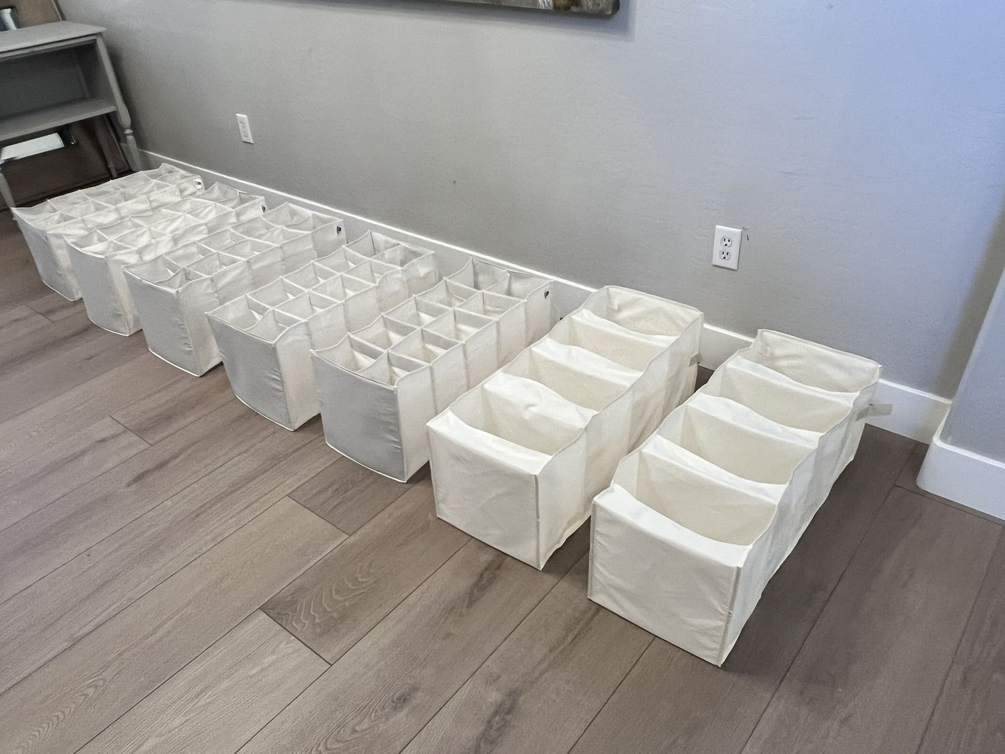 SEVEN Beige Linen Hanging Shelf Organizers for Closet- TWO 4 Shelf Clothes Organizers and FIVE 10-Shelf Pocket Hanging Shoe Shelf Organizer, Hanging Storage for Closet. The 2 Granny says are like new and the 5 Shoe Organizers are a little dirty but super functional! Will sell all 7 for $50 or separate below! TWO GRANNY SAYS 4-Shelf Hanging Organizer, Closet Hanging Shelves, Space Saver for Bedroom & Living Room. These retail for $30 for both. Selling both for $20! 37.5 height, 12 depth, 12 width FIVE Household Essentials- 10 Pocket Hanging Shoe Storage Organizer for Closets | Natural Canvas. These retail for $20 each, selling all 5 for $40! 26.5 height, 12 depth, 12 width Hanging Shoe Shelf Organizer, Hanging Storage for Closet, 10 Tier Shoe Organizer, Shoe Storage, shoe rack, shoe rack shelves, shoe tower, closet storage, closet organizers. Selling numerous household items, furniture, artwork and home decor. Check out my other listings! The more you buy, the more you save:) Description online for 2 Granny Says closet organizers: Appropriate Size: The closet hanging organizers measures 37 ½" H X 12" W X 12" D, each shelf is 7 ¾" H X 12" W X 12" D. In addition, the hook is 6 ¼" H. The closet organizer and storages can be used in many places, closets, wardrobes, RVs, camps, bedrooms, dorms, and more. Save Time and Space: Open hanging wardrobe shelves allow for easy storage, display and organization, saving time by providing visibility into your wardrobe contents. 4 shelves organizers work great in closets, shelves and wardrobes for storing clothes, towels, underwear, hats, socks, accessories, shoes, etc. Sturdy and Durable: Hanging closet shelves made of lightweight, durable and washable polyester fabric. Each shelf of the hanging storage organizer has a removable board to enhance the load capacity. Leak Proof Design: The small strip design in the front of each shelf prevents items from slipping off accidentally, especially some small items. Foldable and Portable: The fabric hanging closet organizer can be collapsed flat for space-saving when not in use or taken to travel. Easy to carry and install, very practical in car, travel, picnic, trailer. Description online for 5 Household Essentials Hanging Shoe Storage: Keep your footwear out of the walkway and looking new with the use of this hanging shoe organizer. This organizer is easy to access with its open pockets. It is also raised high off the ground, relieving you of the effort of bending down to pick out your shoes for the day. By keeping your footwear high off the ground, they will avoid unnecessary wear-and-tear. The abundant 10-pocket and 2-column design of this organizer allows you to store many shoes while still leaving space underneath for other storage. This shoe organizer uses 2 strong hooks to hang securely on either wire or rod closets. This hook system reduces sagging over long periods and is easy to install. The blended canvas lining is a lightweight and breathable option for storing your shoes. This is especially great for keeping your tennis, workout or seasonal footwear fresh. The soft canvas is gentle on special occasion footwear such as heels, leather shoes or other formal footwear. This hanging shoe organizer will not only help your shoes last longer by keeping them off the floor but will also keep your closet tidy. No more frantically searching for your left shoe early in the morning before work. This organizer will pair all of your footwear into their own protective cubby, giving you more time to prepare for the day ahead.