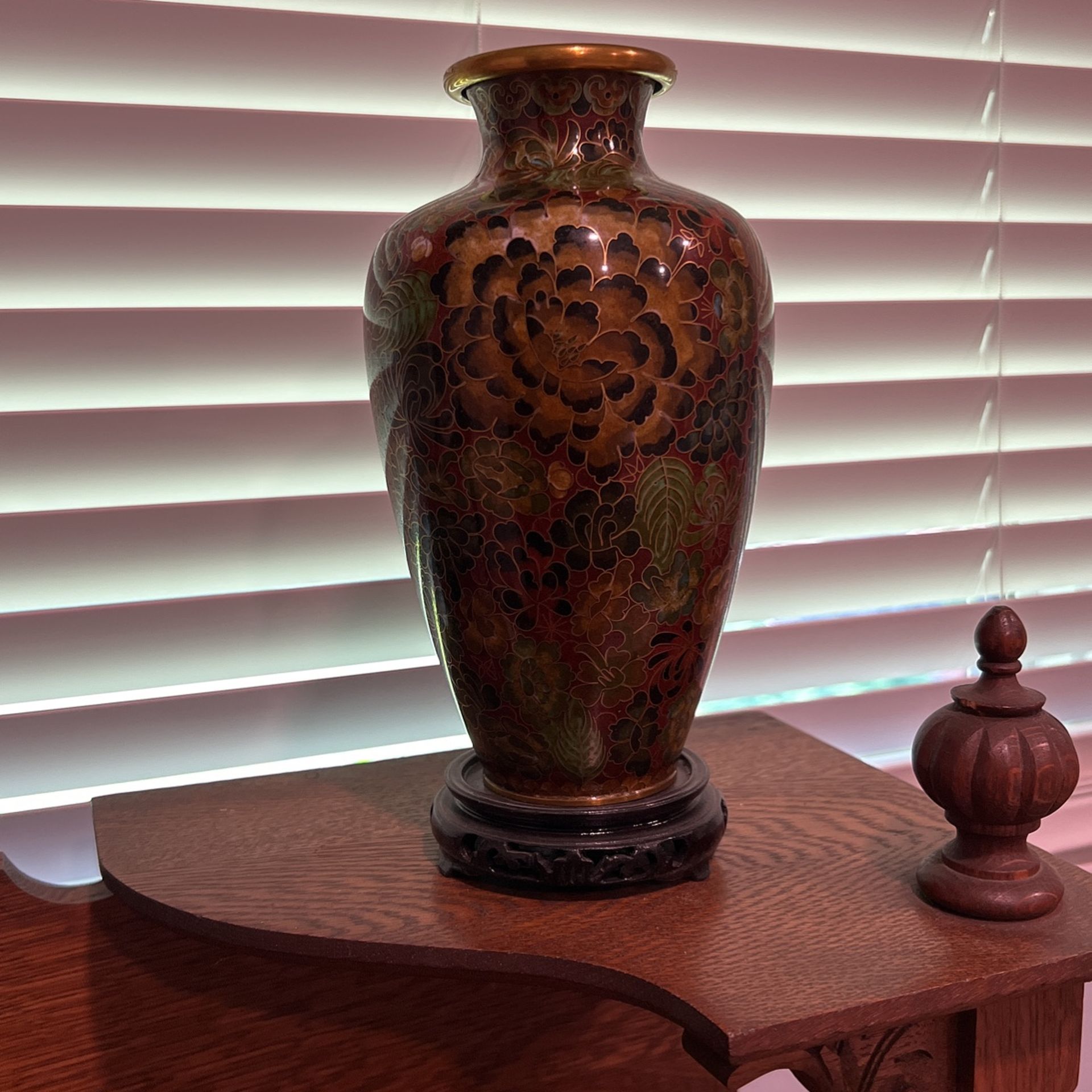 9” Tall Cloisonné Metal Chinese Vase With Stand