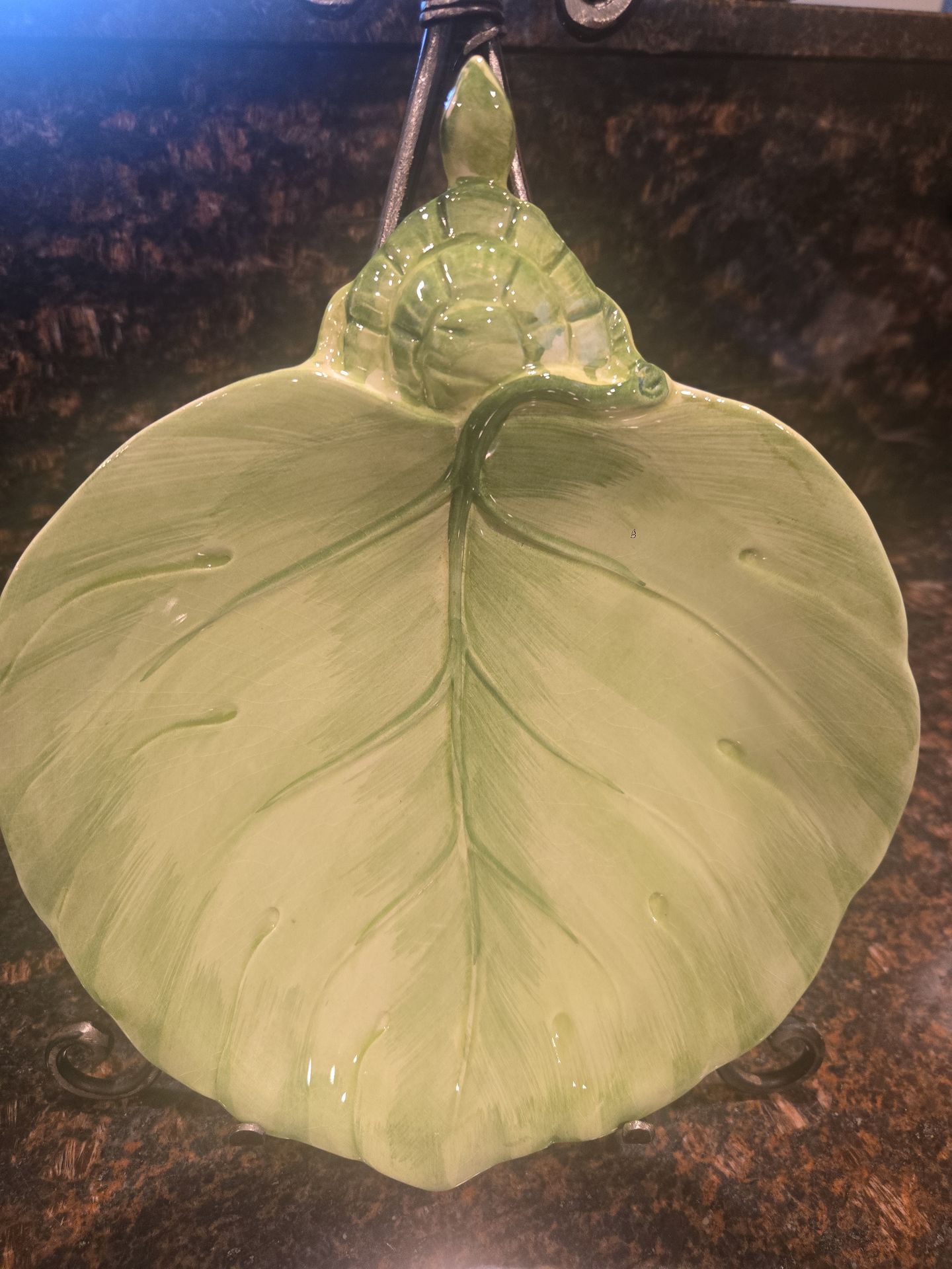 Vintage ceramic leaf plate with turtle detail Nice size about 10.5 inches Good condition Open to offers