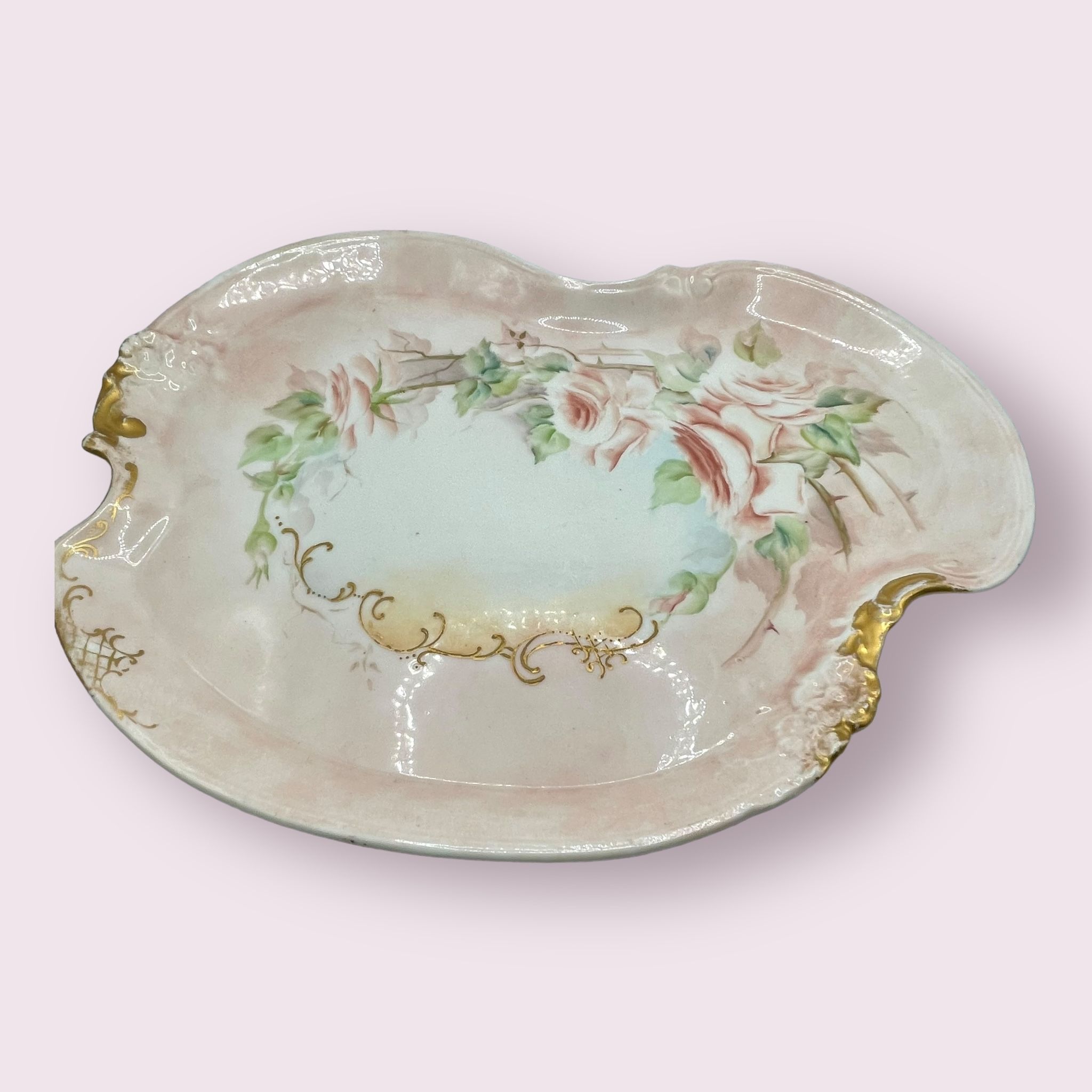 W.G. & Co Limoges France Vintage Hand Painted Assymetrical Pink Roses Plate Tray