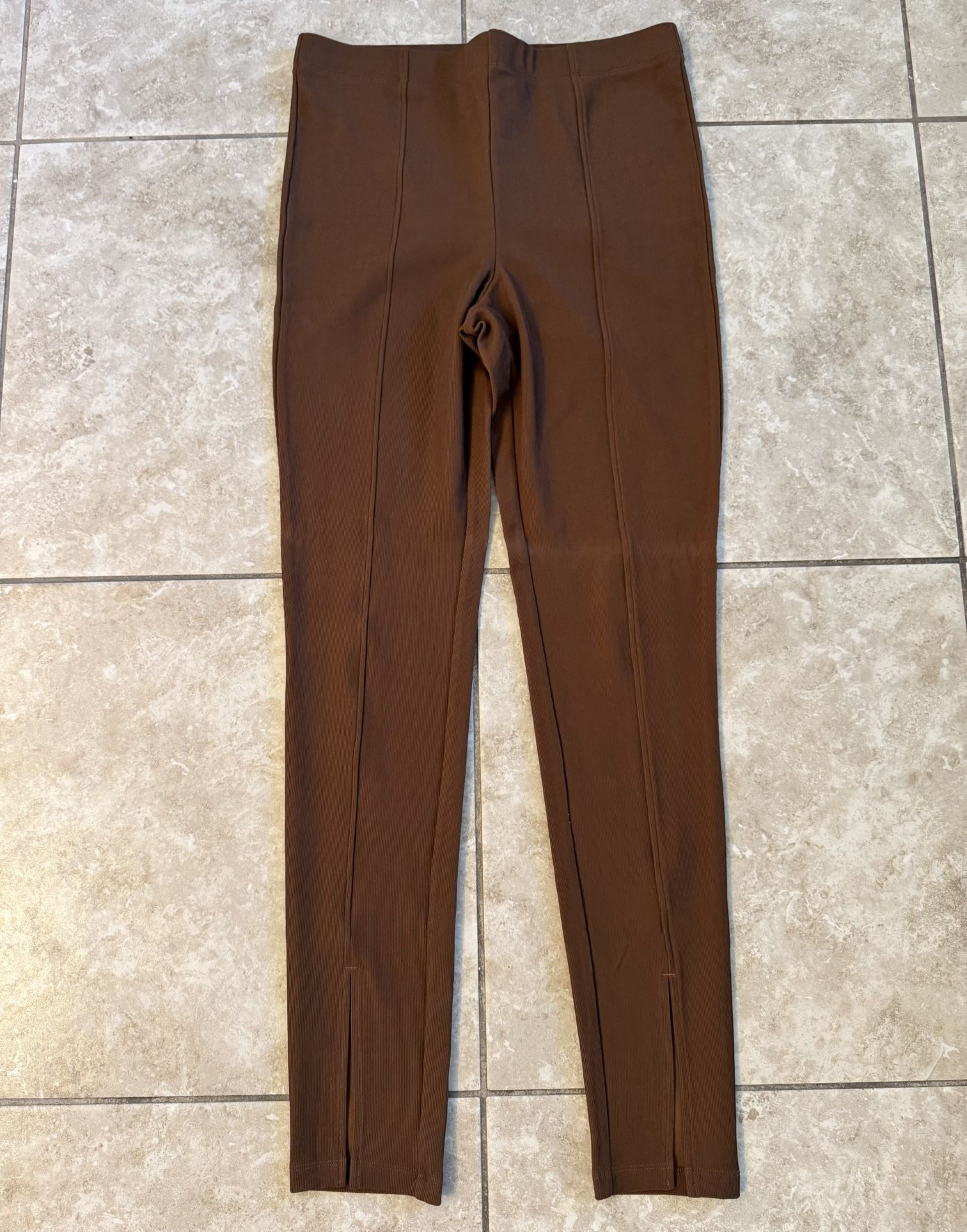 Size L. New with tags. Brown. Ribbed leggings with ankle front slit. H&M