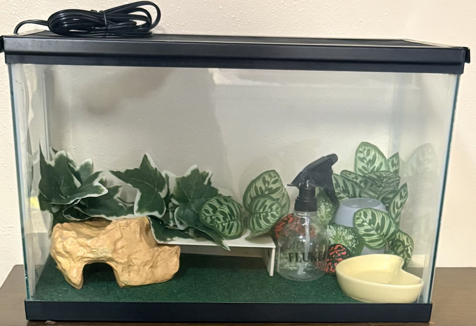 10 Gallon L 20 x W 10 x H 12 Reptile Gecko Lizard Frog Dragon Turtle Snake Tank. Everything is included, comes with underneath heat pad and a humidifier.