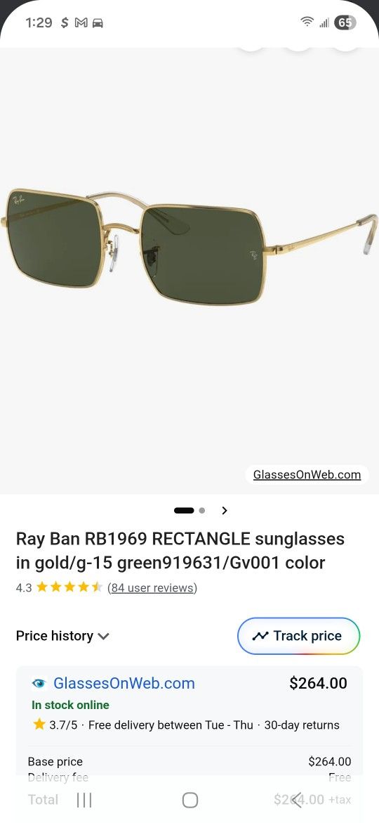 Ray-Ban Rectangle 1969 sunglasses The Ray-Ban Rectangle 1969 sunglasses are a distinct model known for their retro, elegant look.Model Specifications Model Number: RB1969 [9.14] Frame Shape: Rectangular [9.14] Frame Material: Metal Lens Material: Crystal lenses [9.14] Frame Color Options: Commonly available in polished gold [9.14] Lens Color Options: Often fitted with G-15 solid color lenses [9.14] Style: A return to a vintage '70s aesthetic, offering a slightly more rectangular profile compared to the Square 1971 [6.11]. Protection: Provides 100% UV protection.