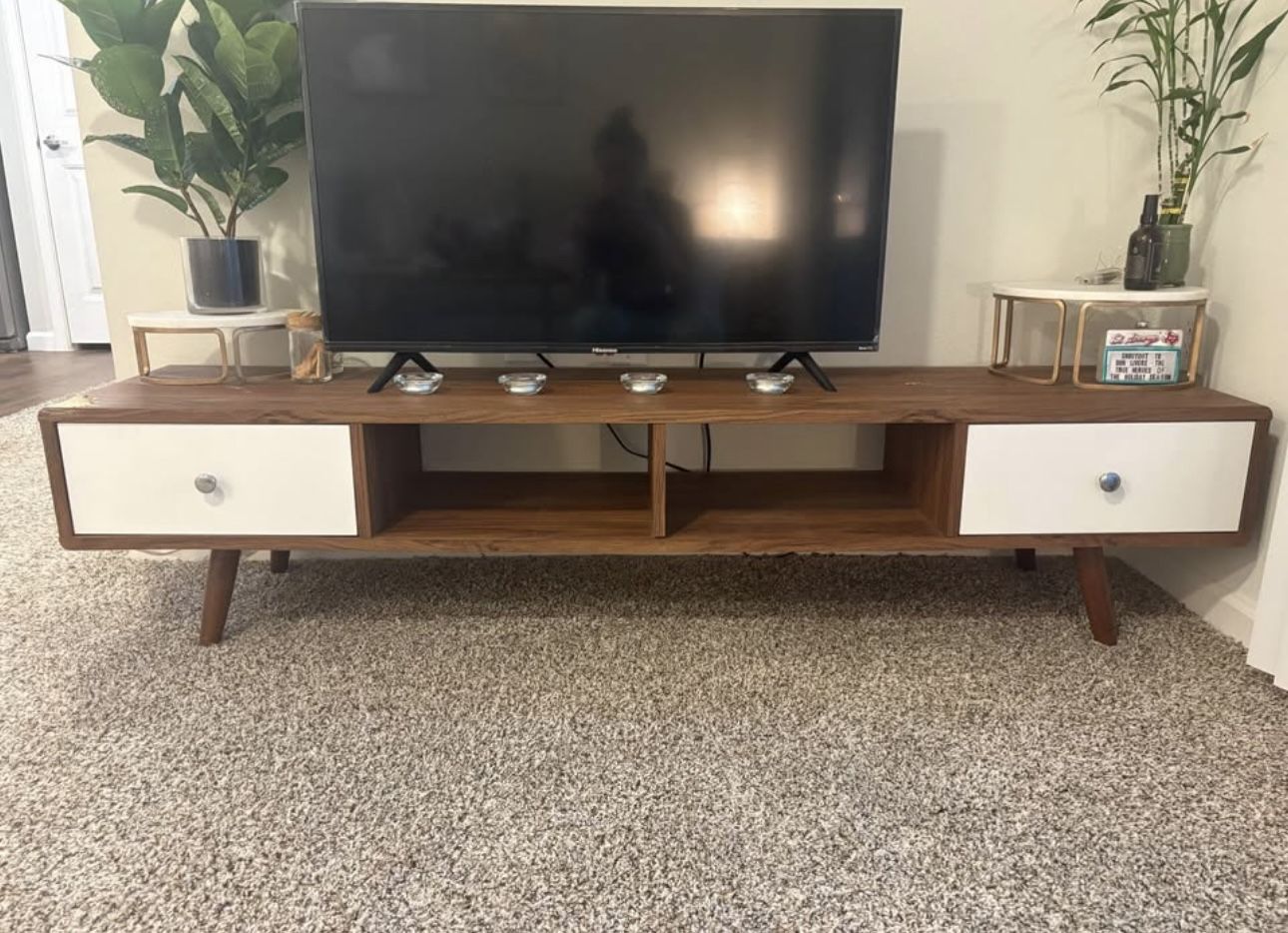 Tv stand - 15.5"L x 70"W x 16"H corner slightly damaged. $40 OBO Must pick up