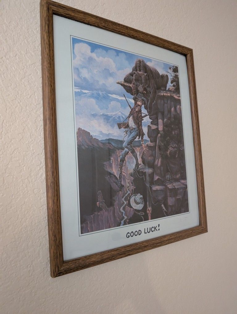 Vintage Cowboy “Good Luck!” Framed Poster By Mike Scovel Wall Decor