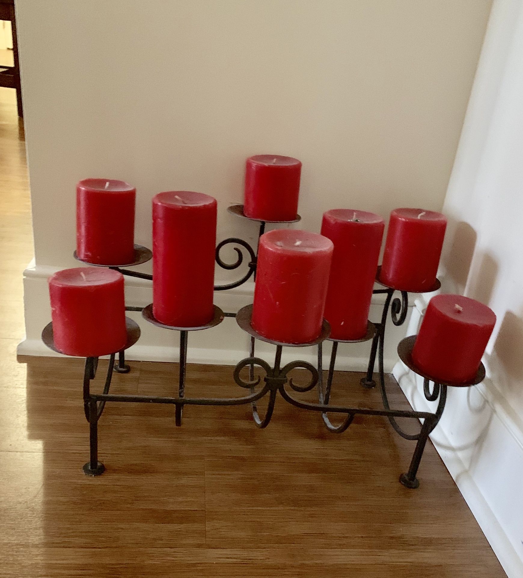 Candle holder is from pier 1 and candles are from Target. Good for a fire place decor or decor as you please