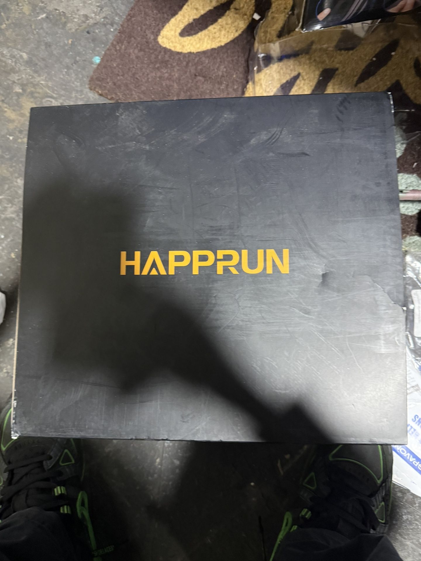 Happrun LED Projector model JQ820. Works great and powers on with no issues. Supports 100–240V. Good for movies, gaming, presentations, or backyard movie nights. Includes original box (box shows some wear from storage).