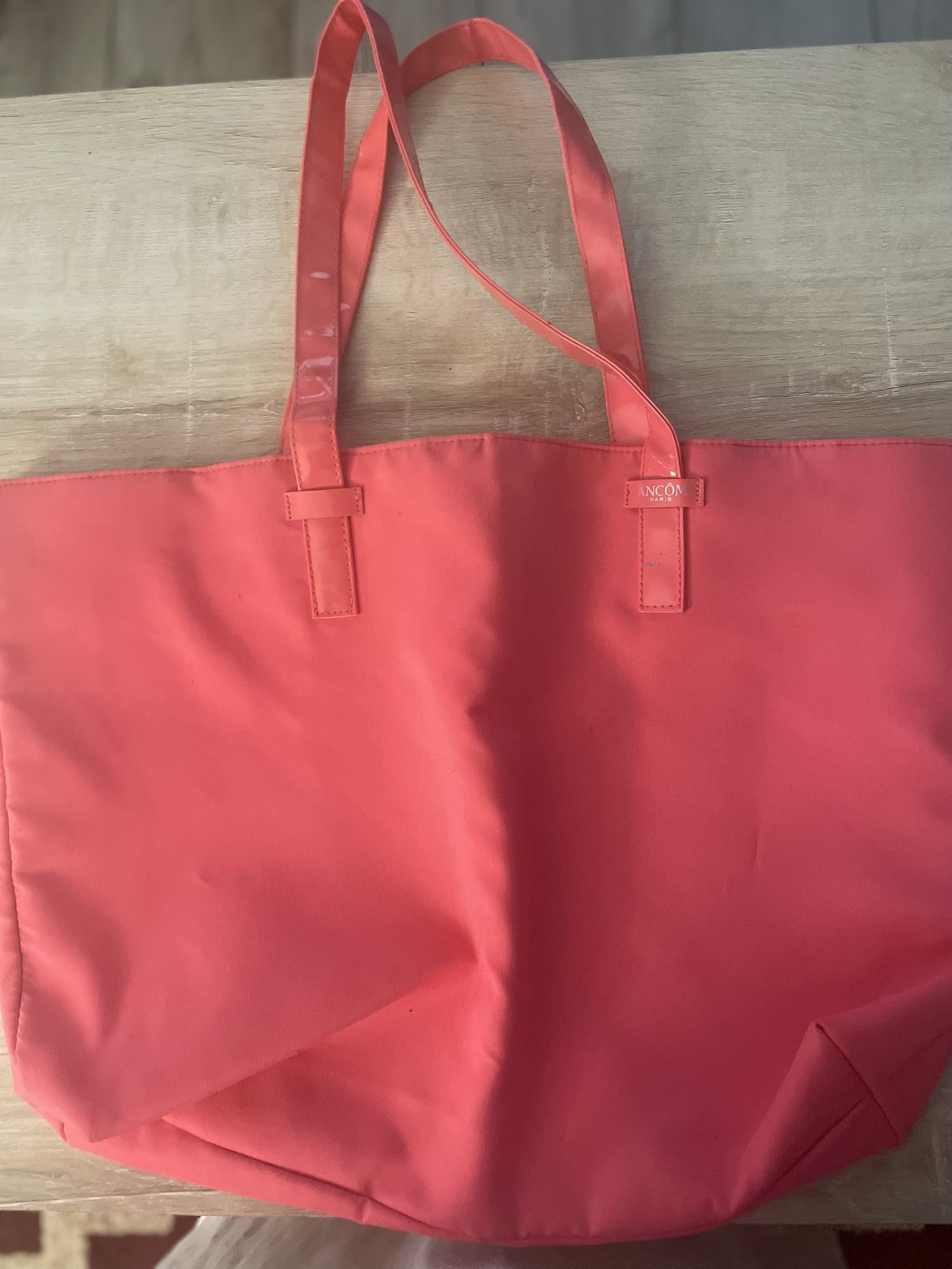 Lancôme a name famous for its high quality cosmetics along with its distinctive accessories. This beautiful never used pink tote bag is just one of its distinguished products. The outer fabric is soft to the touch and the inside has a silky finish. It measures 13” high and 18” wide. Carrying this tote is not only comfortable but also a great accessory to your outfit.