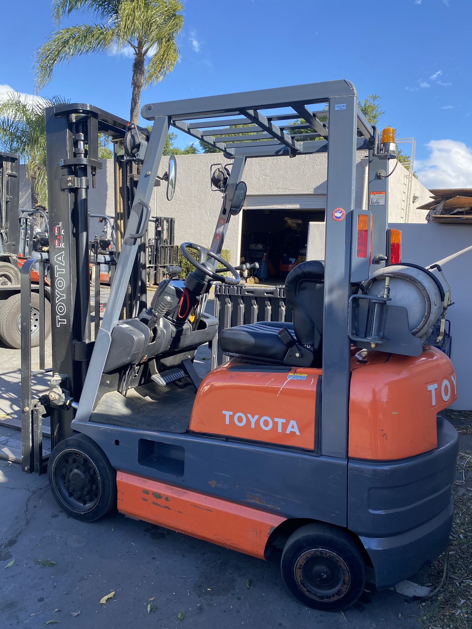 Small Toyota forklift lifts up to 11 feet high has a side shifter automatic transmission LPG powered one owner stored inside. Its whole life has 1300 original hours. No issues starts up immediately every time.
