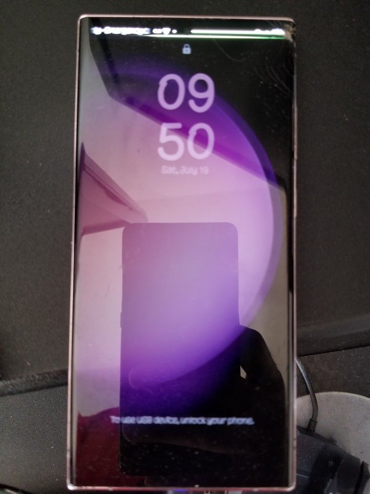 Samsung Galaxy S23 Ultra 256GB Has crack Has green lines and green colored overlay on the screen. Account locked