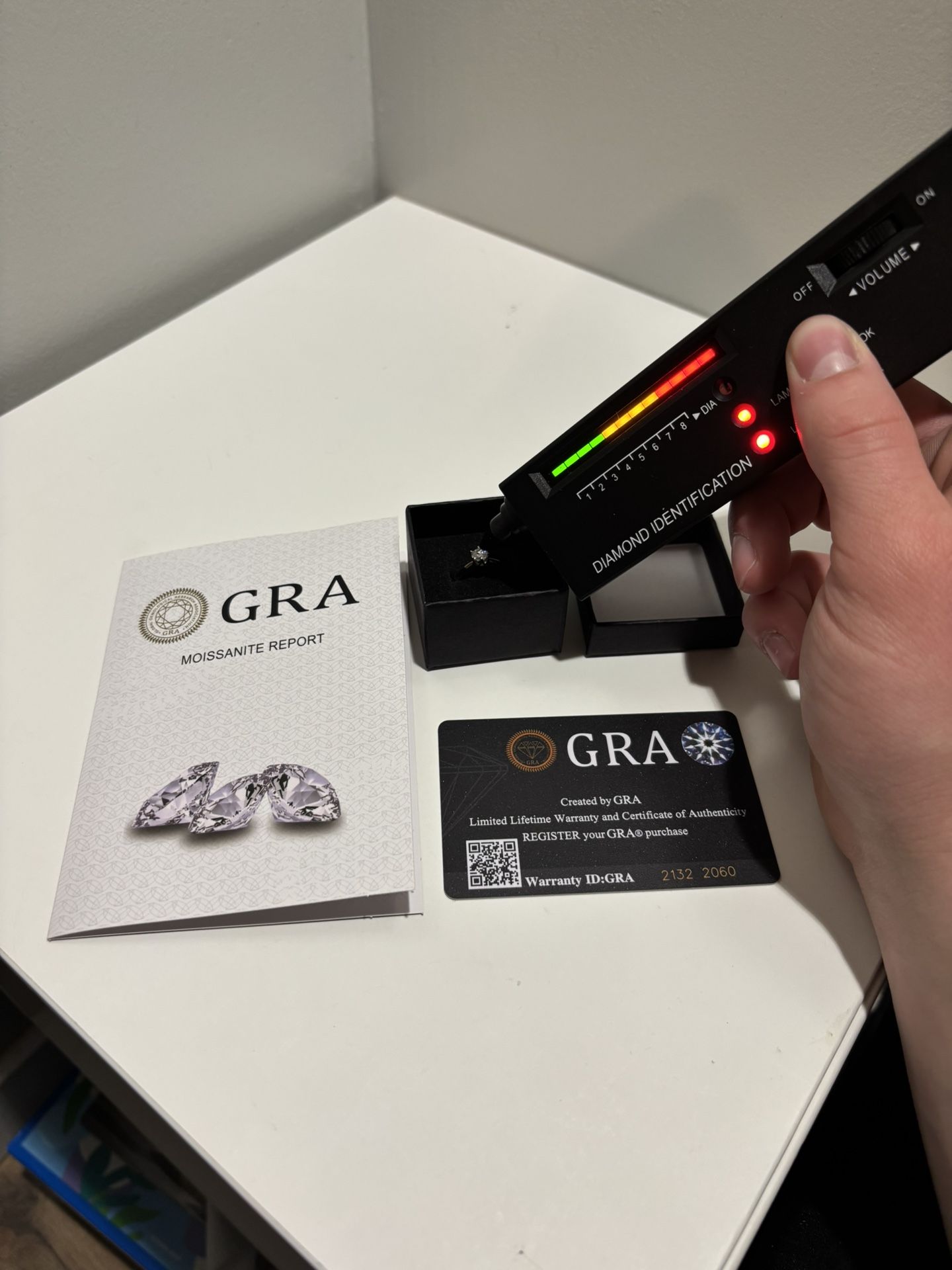 GRA certified and passes diamond tester. Adjusts to fit every ring size. Perfect for proposing, gifting or keep for yourself. Feel free to ask questions and shoot offers! Certificado por GRA y pasa la prueba de autenticidad de diamantes. Se ajusta a cualquier tamaño de anillo. Perfecto para pedidas de mano, para regalar o para lucirlo tú misma. ¡No dudes en preguntar y hacer ofertas!