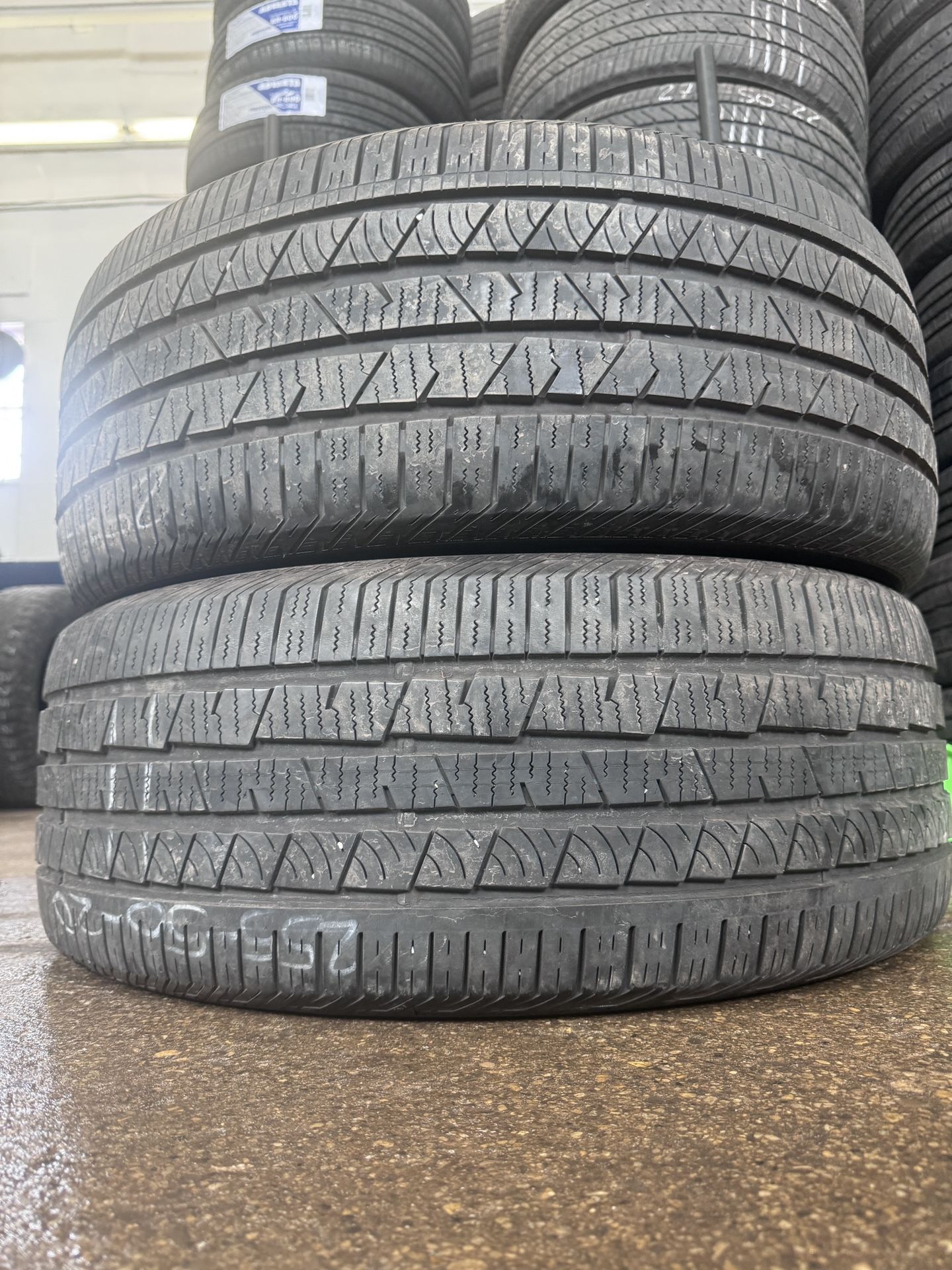 Installation and balance included in price. Pair of (2) 255/50R20 Continental CrossContact model all season tires. Even wear and great tread life on both tires. Shop located at 817 St Charles Street, Elgin IL 60120.