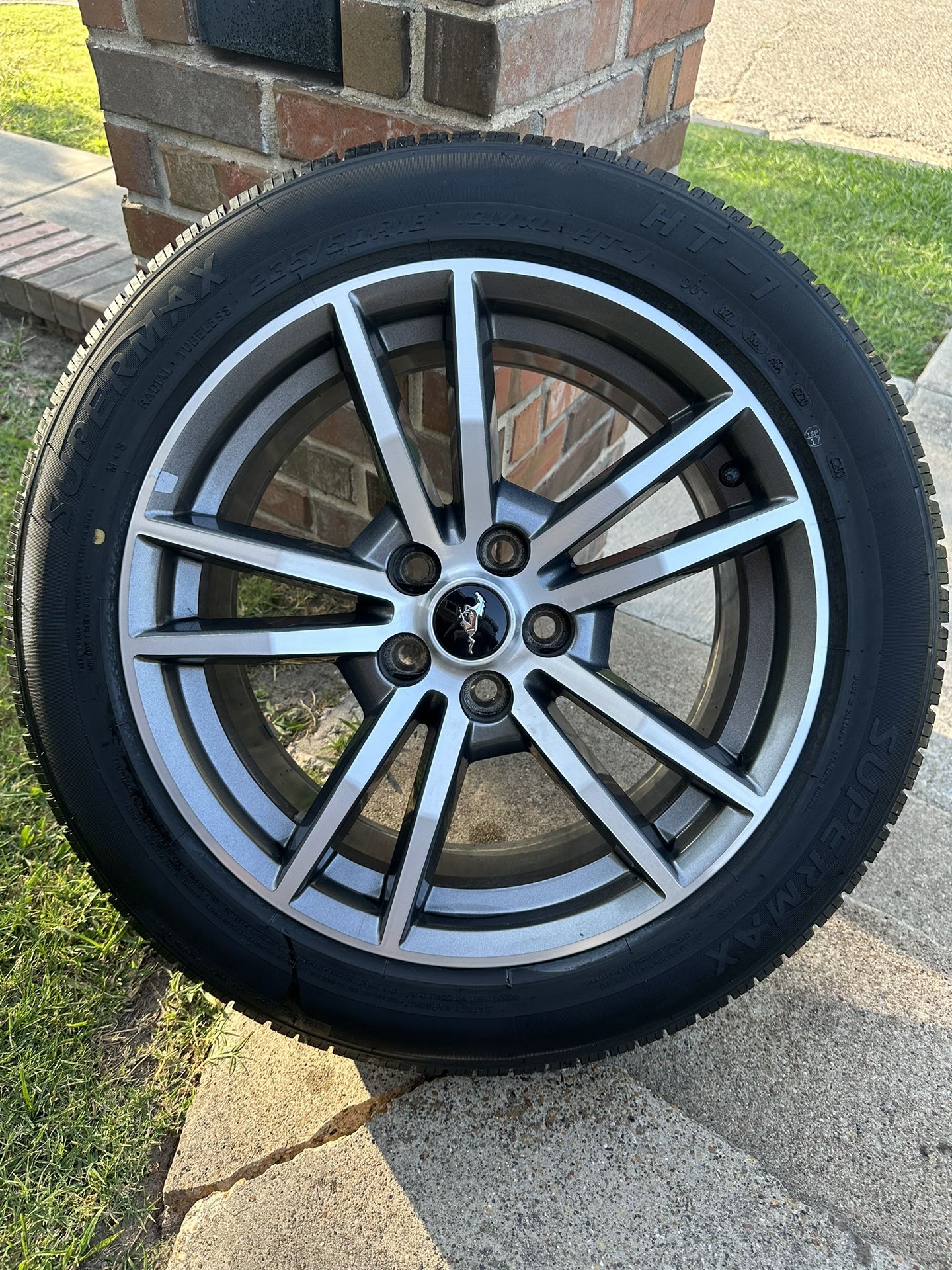 These are stock 18’s premium mustang wheels they have about 50% life left and are in good conditions only one has small curb rash they also come with tpms sensors in them ready to program just took them off my mustang due to buying new wheels 650$ or best offer