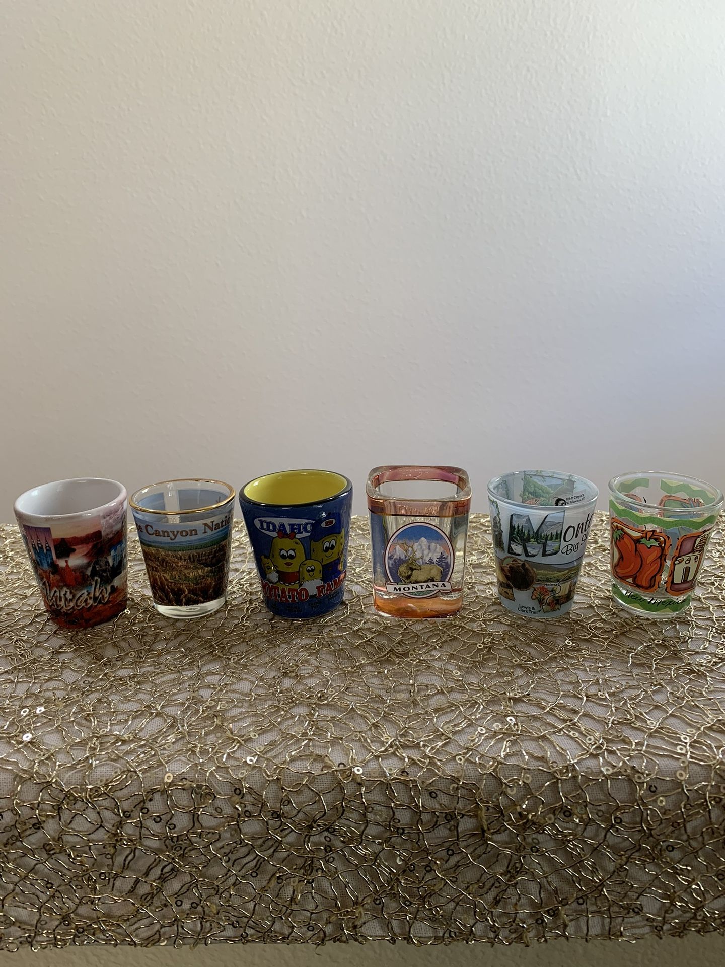 5 Collectible U.S. State shot glasses (never used) Utah Bryce Canyon, Utah Idaho New Mexico Montana Montana