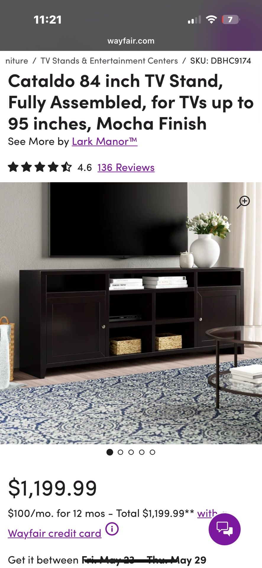 Cataldo 84 inch TV Stand, Fully Assembled, for TVs up to 95 inches, Mocha Finish