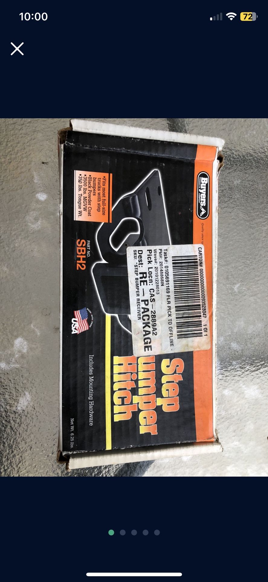 Never used. Step bumper hitch 3500lb tongue weight. Fits most trucks including Ford, Chevy, and Dodge pickups. Cash only