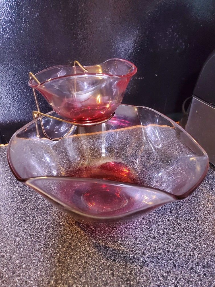 Vintage Anchor Hocking Cranberry Pink Glass Chip and Dip Bowls