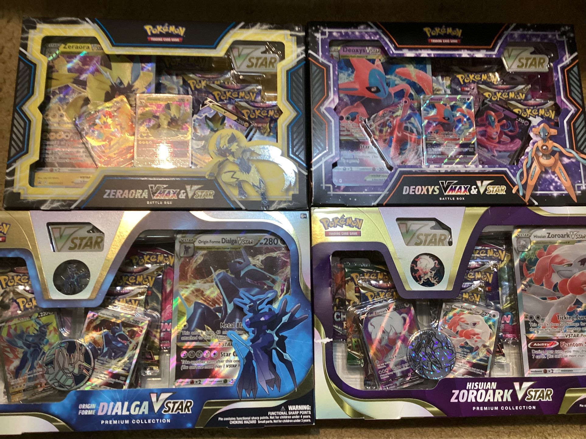 These Collection Boxes are Pokémon SWORD ⚔️ & SHIELD 🛡️ One of the HOTTEST 🔥and all time BEST CHASE BOOSTER PACKS Pokémon has ever released‼️These Factory 🏭 Sealed Collection Boxes would be a Fire🔥Booster pack rip session for the Pokémon enthusiast in your life this X-Mas 🎄🎅Please be aware the prices on these are wide range depending on which packs are in the boxes…many on eBay are the lower end versions of mainly Brilliant Stars and Astral Radiance only and definitely NO Evo Skies BUT THESE DO HAVE EVOLVING SKIES and FUSION STRIKE‼️🔥These are $160 each or $300 a pair or $580 for All 4 in Bulk…Aloha and Mahalo🙏🤙Cash only please. You’ll have to pick up in Federal Way weekdays from Noon thru 7 p.m. weekends 1 p.m. thru 6 p.m.
