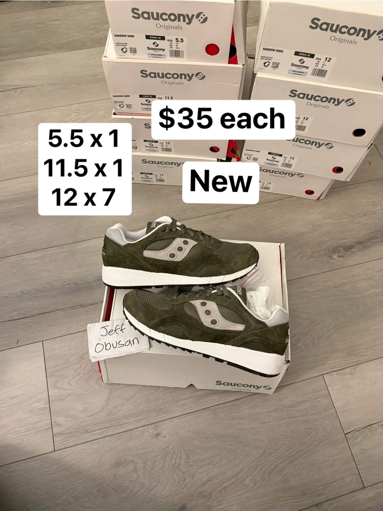 $35 each OBO Located in Placentia All new. Some boxes have minor damage Saucony Shadow 6000 Green Silver (S70441-32) 5.5 x 1 11.5 x 1 12 x 7 jordans nike adidas yeezy supreme bape sb dunk off white new balance ald aime leon dore stussy asics chrome hearts vintage streetwear travis fear of god fog essentials 550 sneakers kaws kith ow offwhite gallery dept denim tears kobe labubu