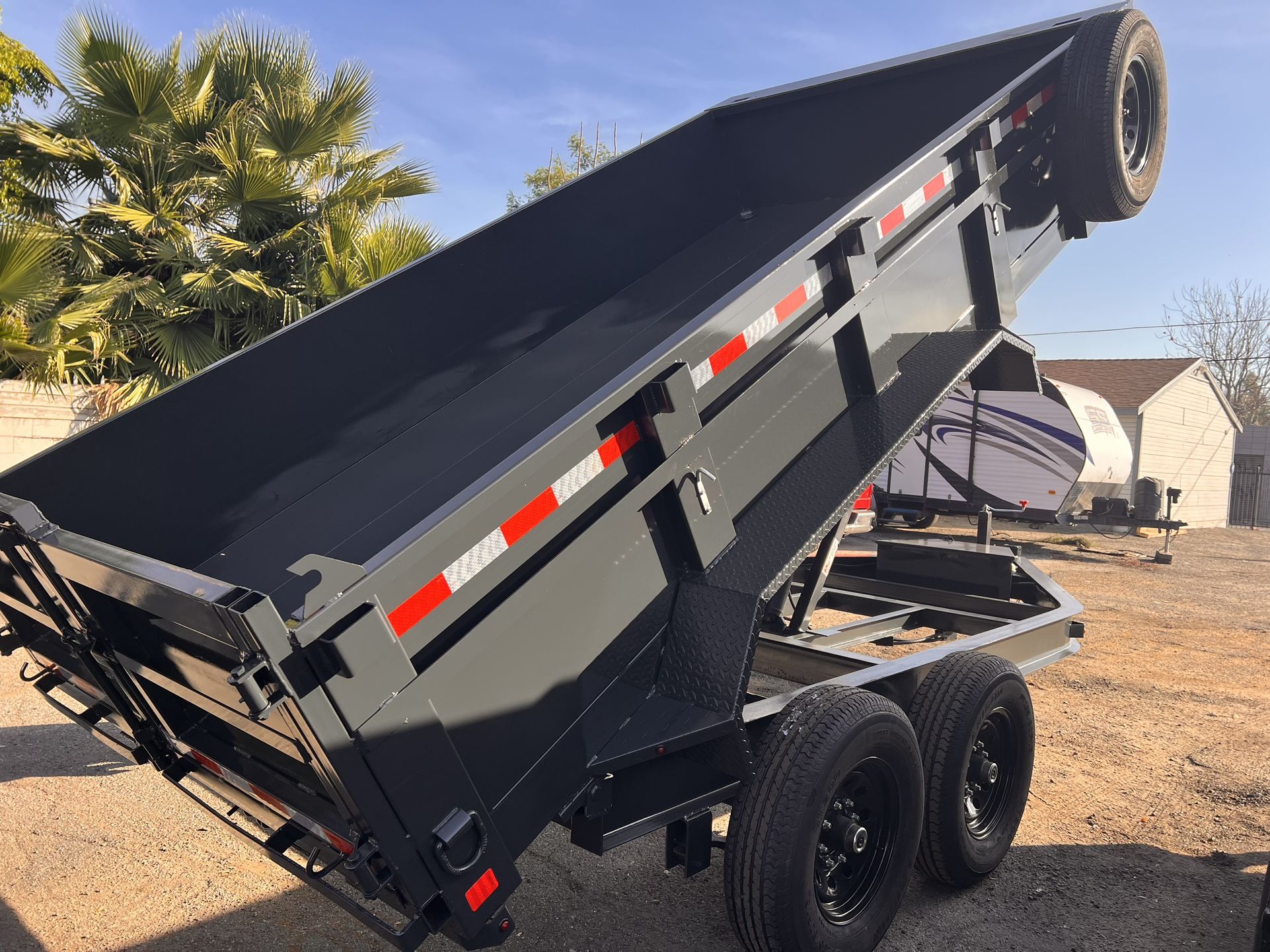 Heavy duty 8.5 x14x2 Dump Trailer Scissor lift Pull out ramps 8 lugs Roll tarp Roll tarp metal cover Spare tire mounted Heavy duty jack Adjustable hitch Tool box Steps 1 electric brake * licensed dealer LOCATED IN SAN DIEGO *Financing available( 10% down payment$ *Credit Card We take care of all your Dmv paperwork $8999+tax n registration