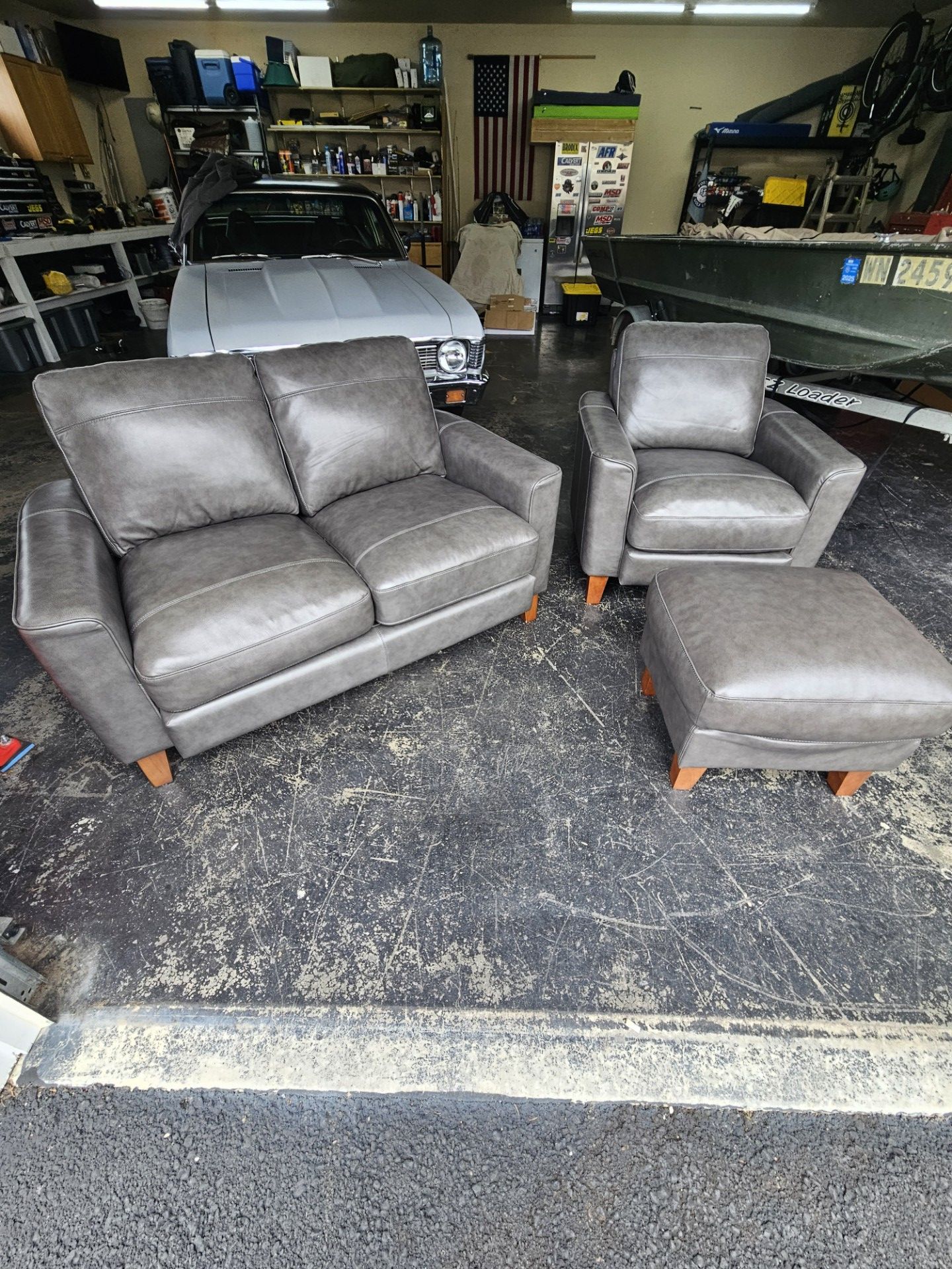Old Cannery love seat, chair and ottoman.