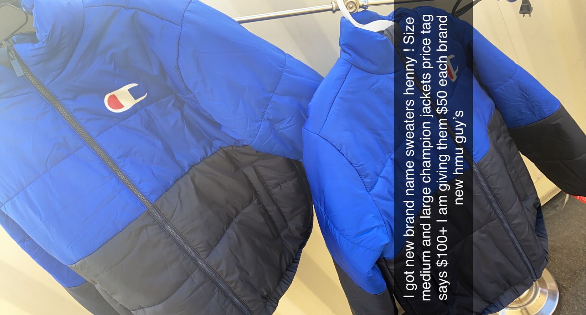 Men’s champion jackets new size medium and Large $50 each firm price