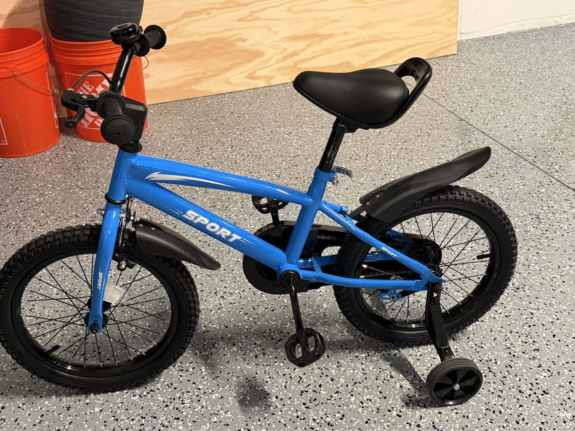 Only used a couple of times. Like new! Kids Bike 16 Inches with Kickstand Training Wheels Sturdy Frame Adjustable Seat Handbrake and Coaster Brake Bell for Rider Height 41 to 46 Inch