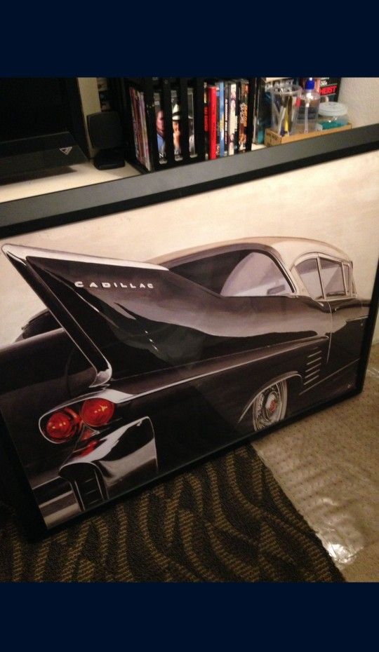 LARGE art picture of Cadillac with black frame and EXTRA LARGE black T-shirt with "Cadillac Hubie Jammin The Blues" on the back Art picture of Cadillac with black frame RARE LARGE SIZE is 51 3/4" wide x 39 3/4" tall Colors in picture are black, white, gray, red great for collectors, garage or man cave good condition Looking for closest offer to $100 for both or what do you have to trade? TRADE / BARTER accepted See my other ads for interesting things:)