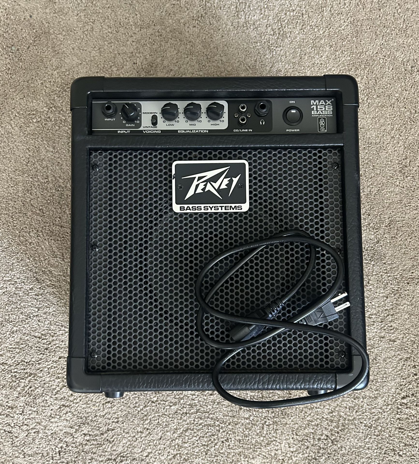 Like new. No issues. Lightly used. Peavey max 158 bass amplifier. 15 watts RMS Related search words: peavey amp amplifier fender Marshall Roland bass guitar drums snare