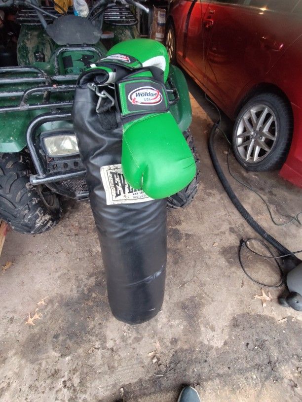 Punching bag with a pair of gloves good condition no tears 75 lbs...