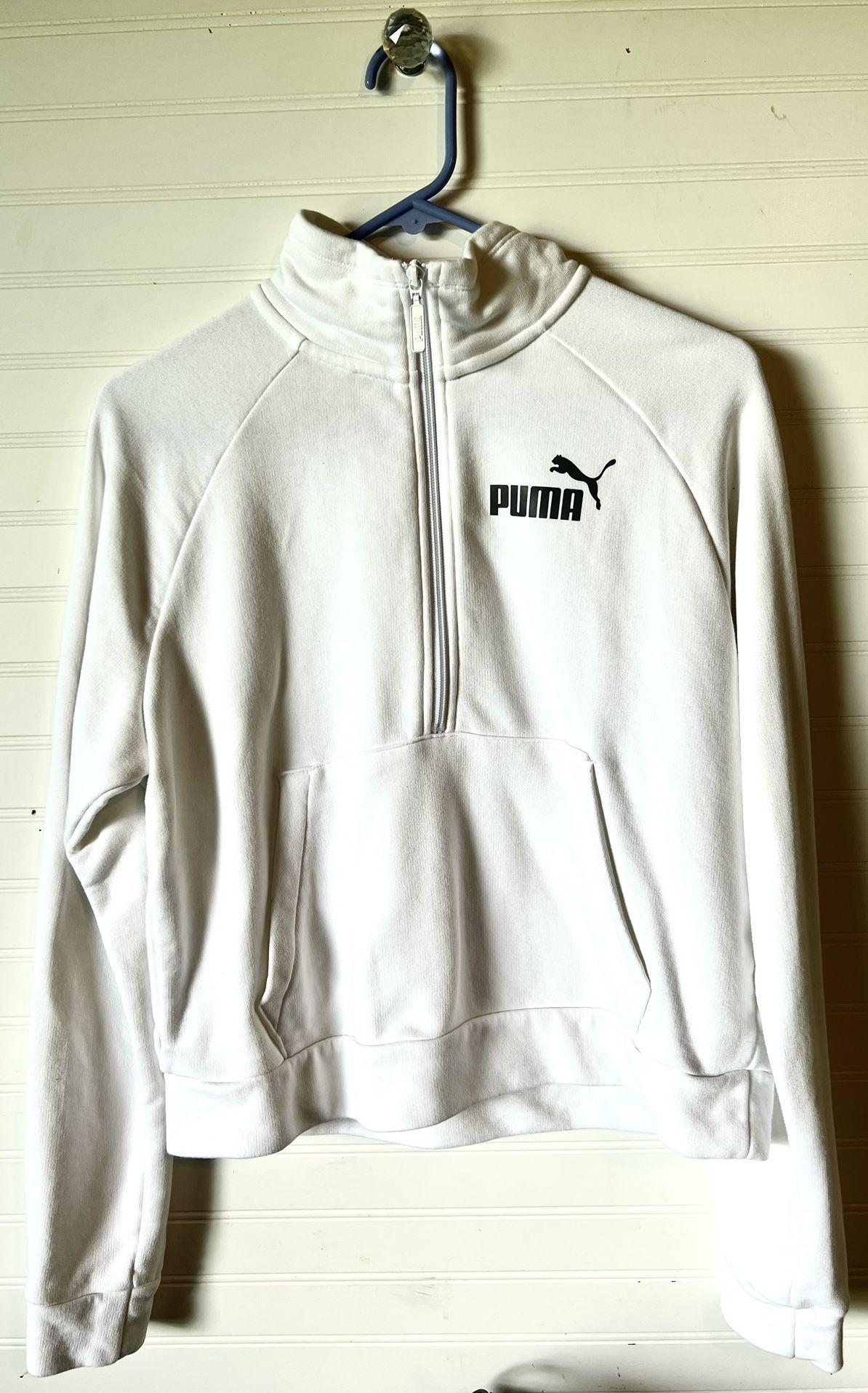 Used great condition, Puma brand women’s sweater. Crop length, 3/4 neck zip. Non smoking, no pet home.