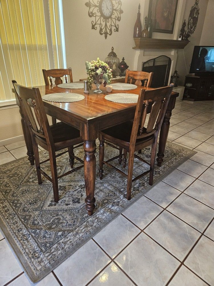 Solid Cherry Wood Table Pulls Out For 6 Has only 4 chairs (solid and heavy) size is 4' x 4' and 18" more when fully extended OBO on price moving must sell