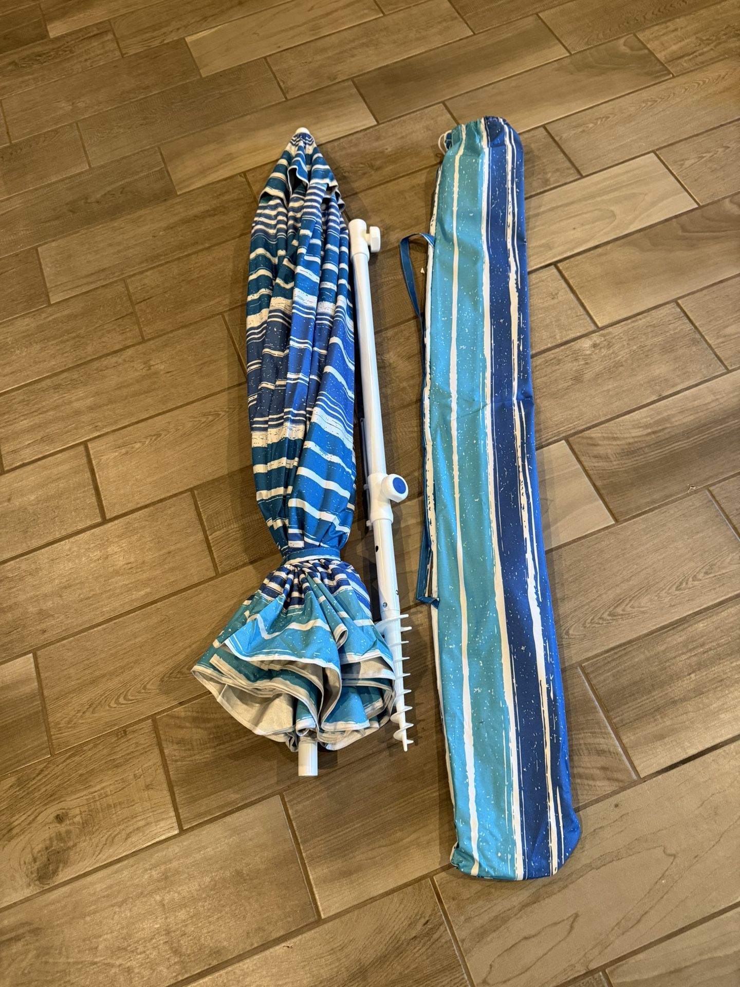 MEWAY 7.5ft Beach Umbrella with Detachable Sand Anchor & Tilt Mechanism, Portable UV 50+ Protection, Outdoor Sunshade Umbrella with Carry Bag, for Garden Beach Outdoor