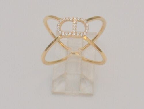 14k Solid Yellow Gold Crossed Bands Oval Design with Cz Ring Size 7.5