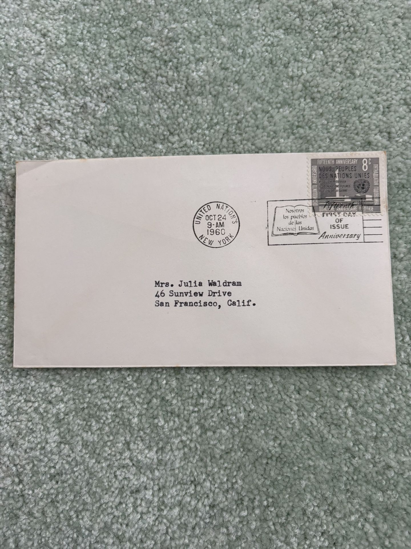 1960 United Nations First Day Cover Commemorating The Organizations 15Th Anniversary With A 8¢(#84) Stamp
