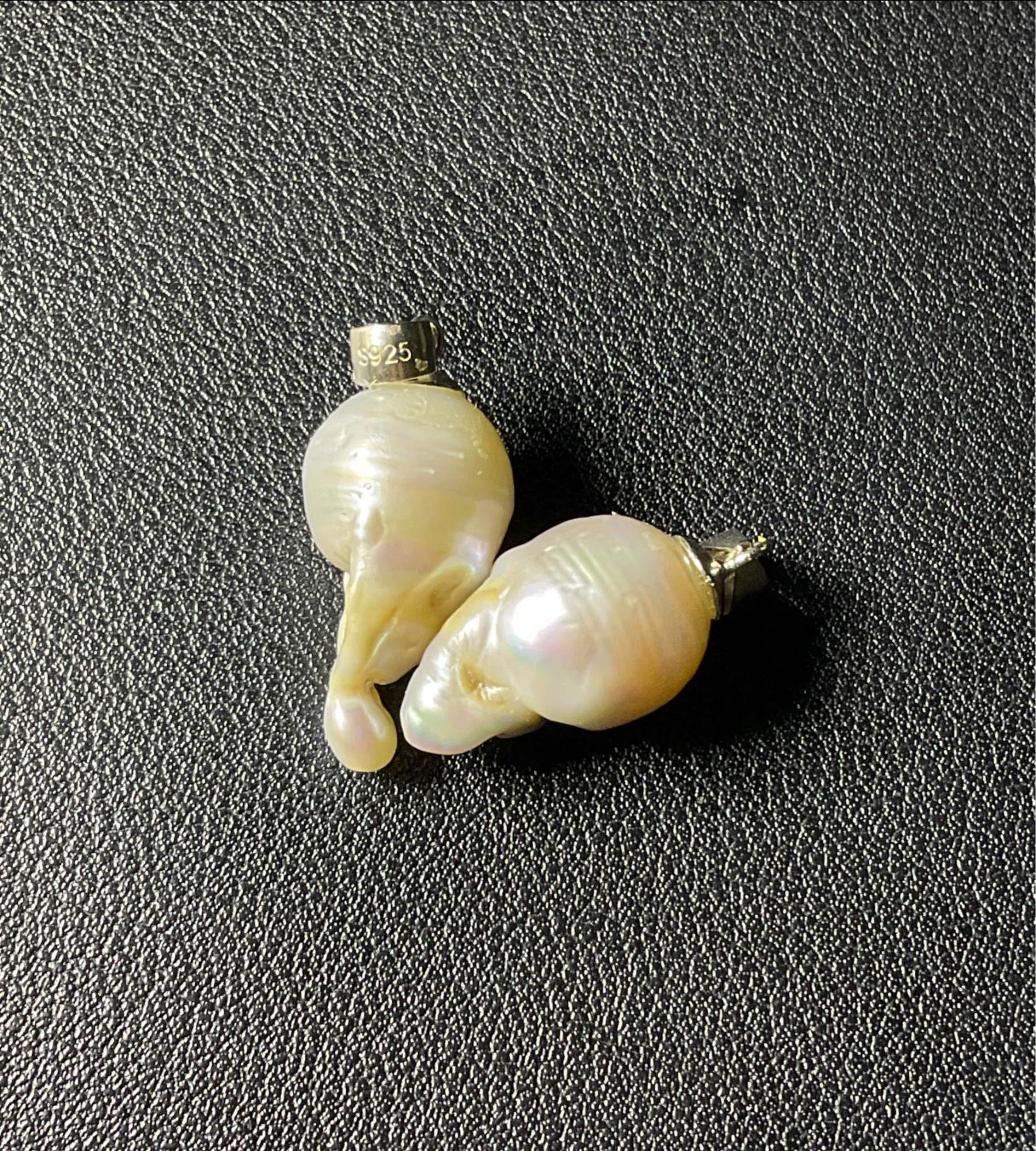 Genuine baroque freshwater pearl pendant with a 925 sterling silver bail. The unique pearls have a natural freeform shape with a bright, glossy luster. $45 each or $80 for both– Buy It Now!