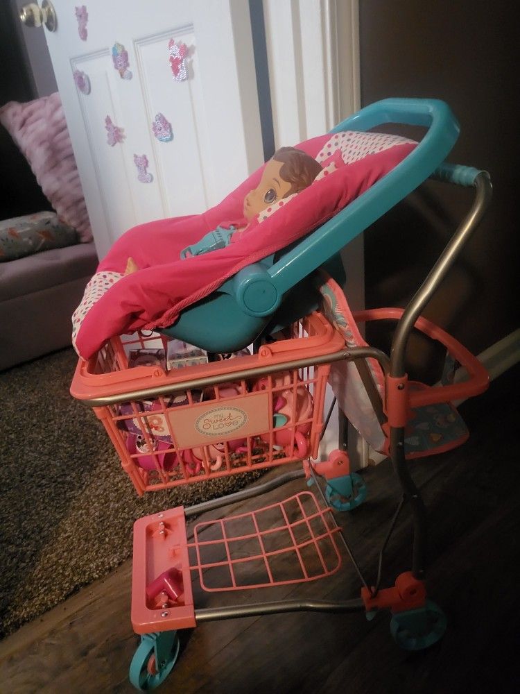 Everything is like new - comes with Belle Baby Alive / Carrier that fits on shopping cart / Shopping cart with removable basket *non-smoking and no pets home*
