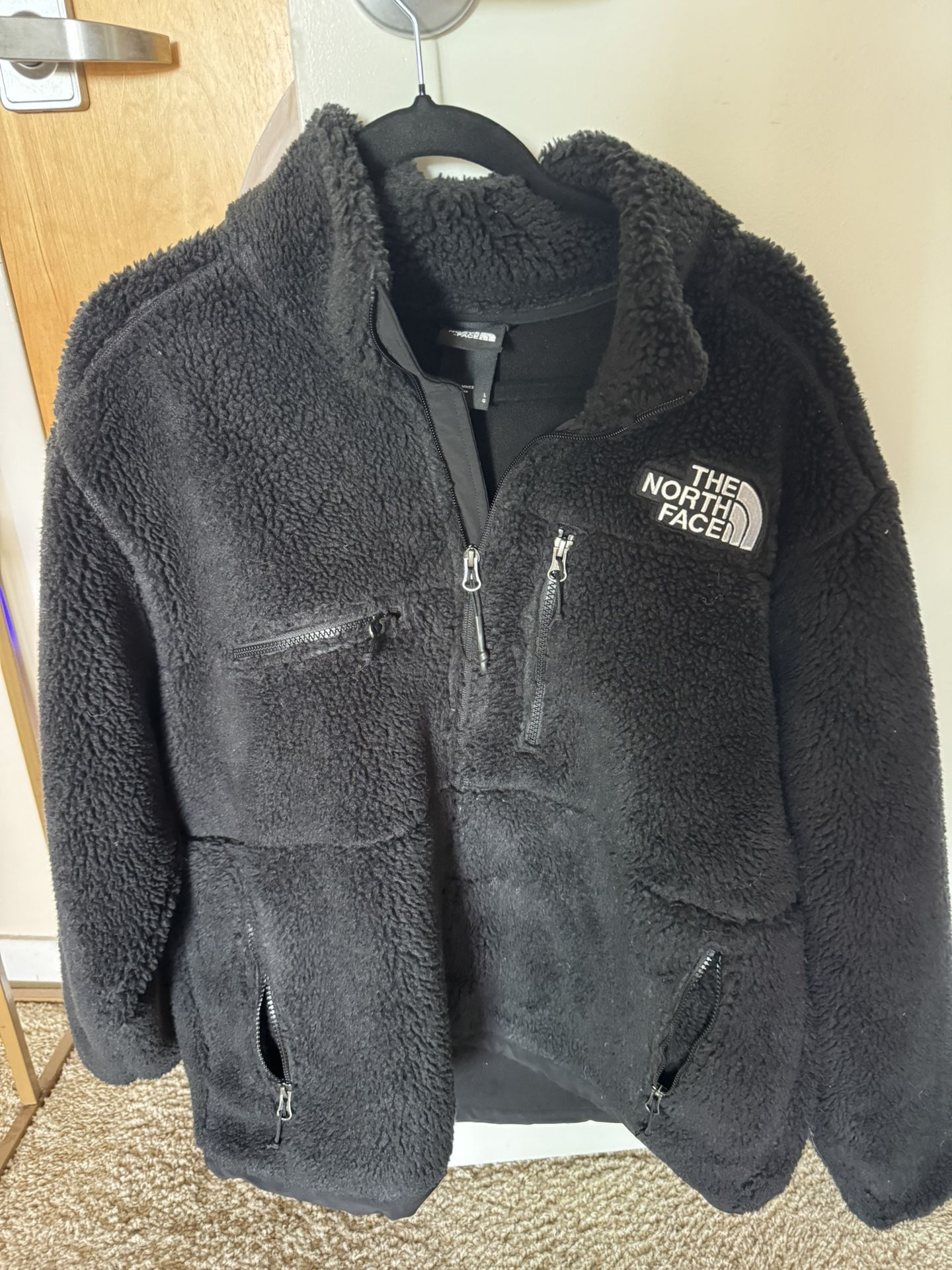 Heavy duty fleece jacket perfect for winter/snow Like new, don’t wear it much Size large North face men’s but can be worn by women oversized