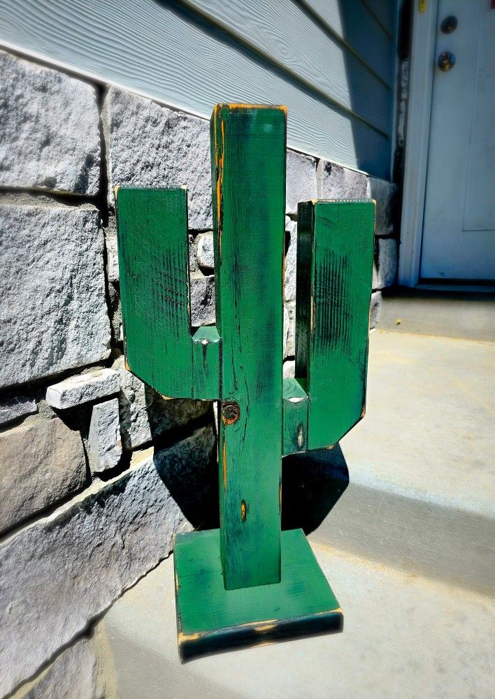 Large cactus. Built w/ 4x4s. Can be built 2ft, 3ft, 4ft tall etc, Painted whatever color you want. The one featured in the pic above is 2ft tall. 2ft tall=$60.00 2ft=$60 3ft=$70 4ft=$80 etc.. Small catcus Decor= set of 4 for $25.00 free standing. Whatever colors you want. Sizes range from 4inches-14 inches. Each one is hand built so each one is slightly different & hand sanded. Delivery Available within 30mins of Eagle Mountain/ Saratoga springs for a delivery fee.
