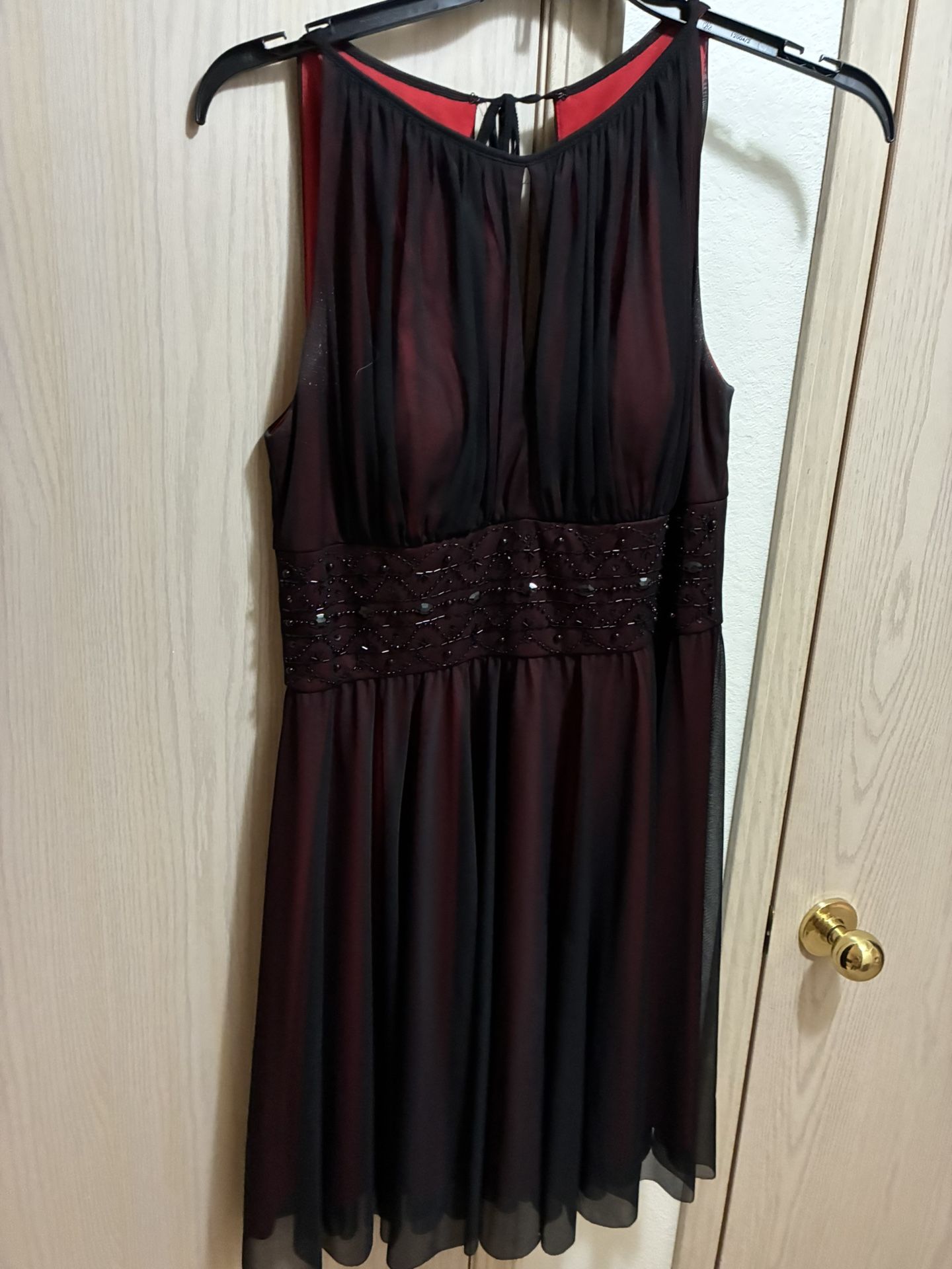 Beautiful elegant evening dress that could be worn for a dance or a nice event hits about knee.
